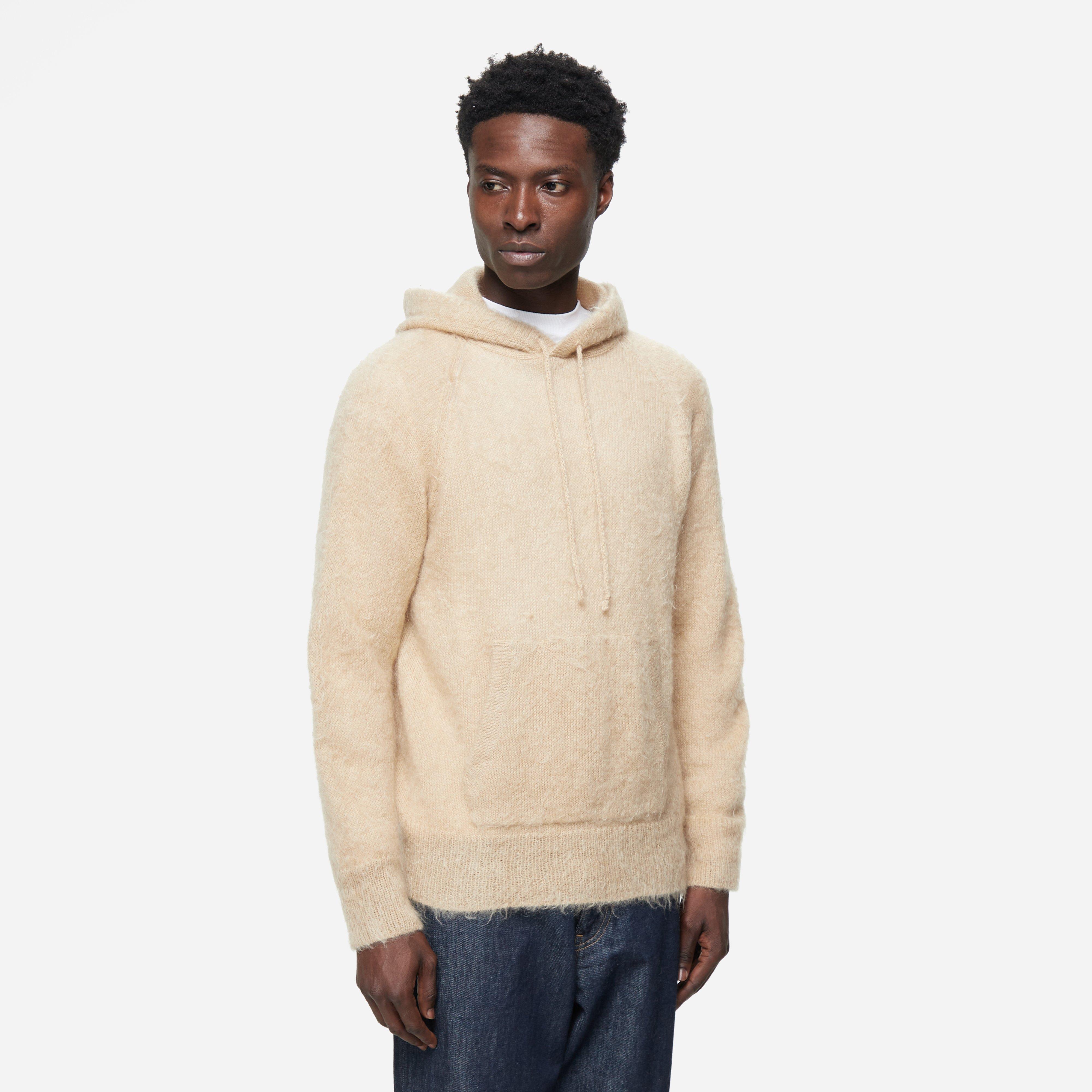 The Superkid Knit Parka is crafted from long hair yarn with a blend of soft mohair and wool. Beige - 60% kid mohair, 40% wool - Ribbed cuffs and hem - Made in Japan - Kangaroo pocket - Drawstring hood - Model is 6'2" and wears a size 5.