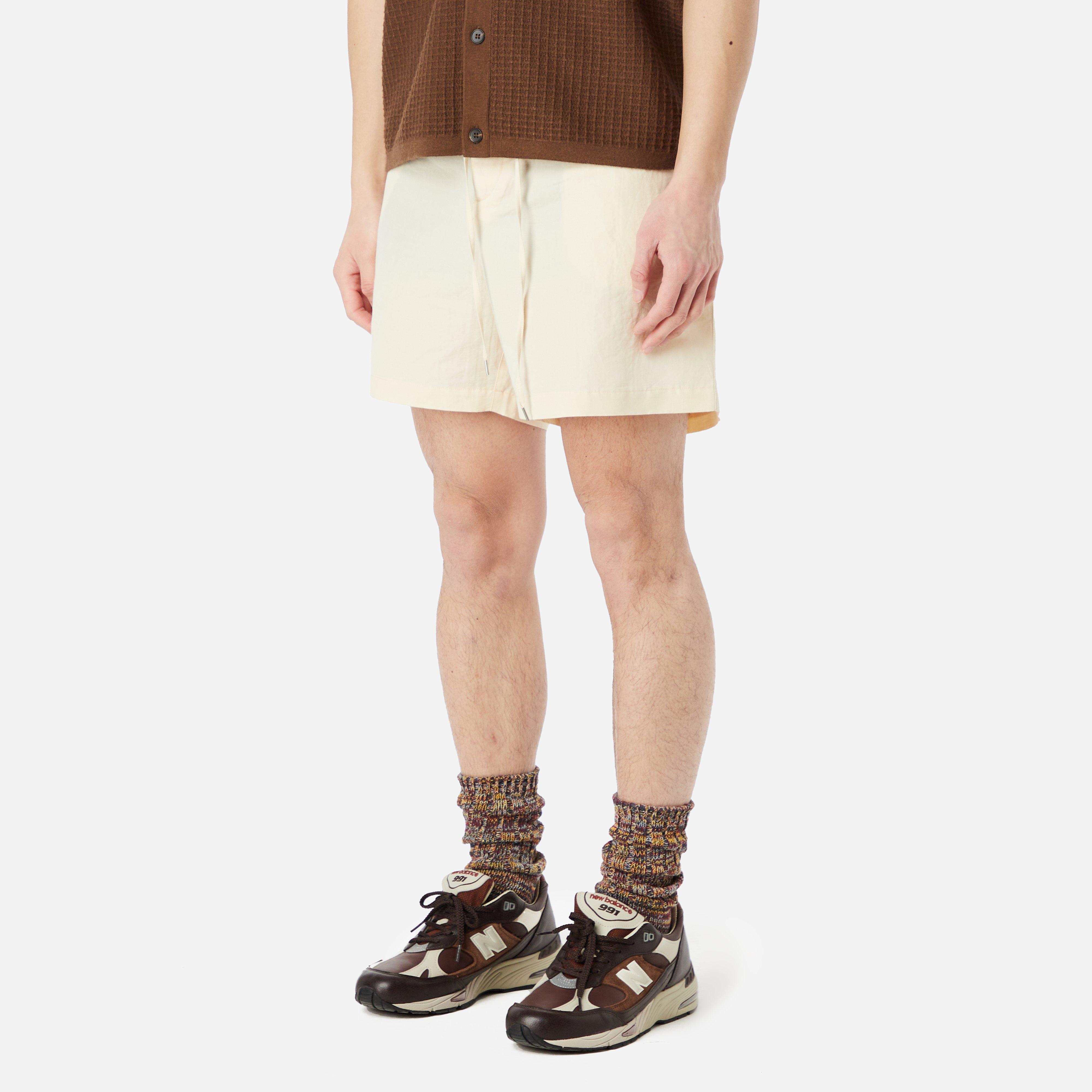 The Weather Easy Short is a practical style made of ultra-fine count cotton and nylon, twisted tightly and densely beaten together - a special process that creates a smooth texture. Beige - 52% cotton, 48% nylon - Elasticated drawstring waistband - Made in Japan - Wide leg, short length - take your normal size - Model is 6'1" and wears a medium - Waist size guide not stretched (in.) - S=28.8, M=30, L=30.4.
