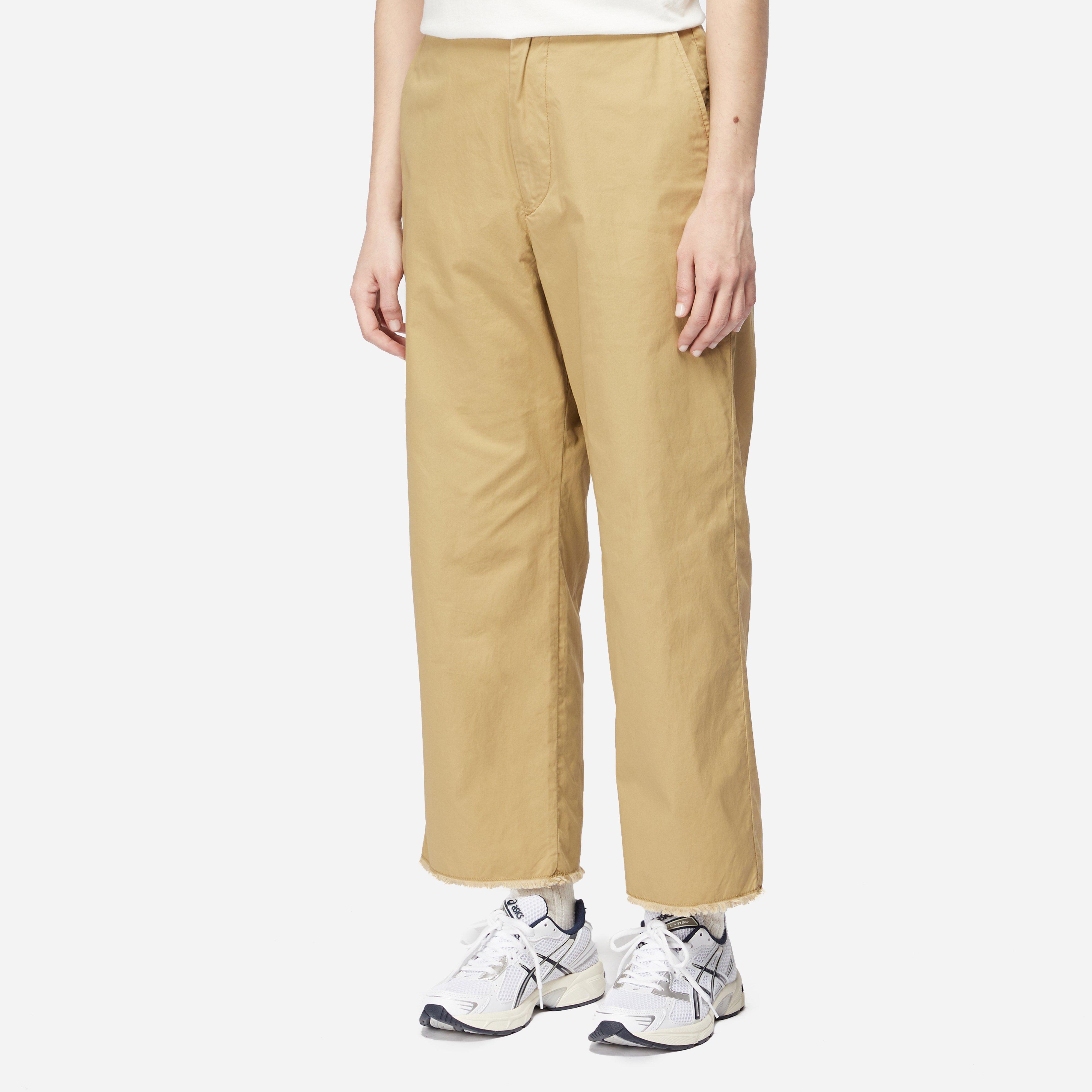 Beige - 100% cotton - Cut-off hem - Tapered fit, take your normal size - Model is 5'6" and wears a size 1/S - Waist size guide (in.) - S=29.1, M=29.9."