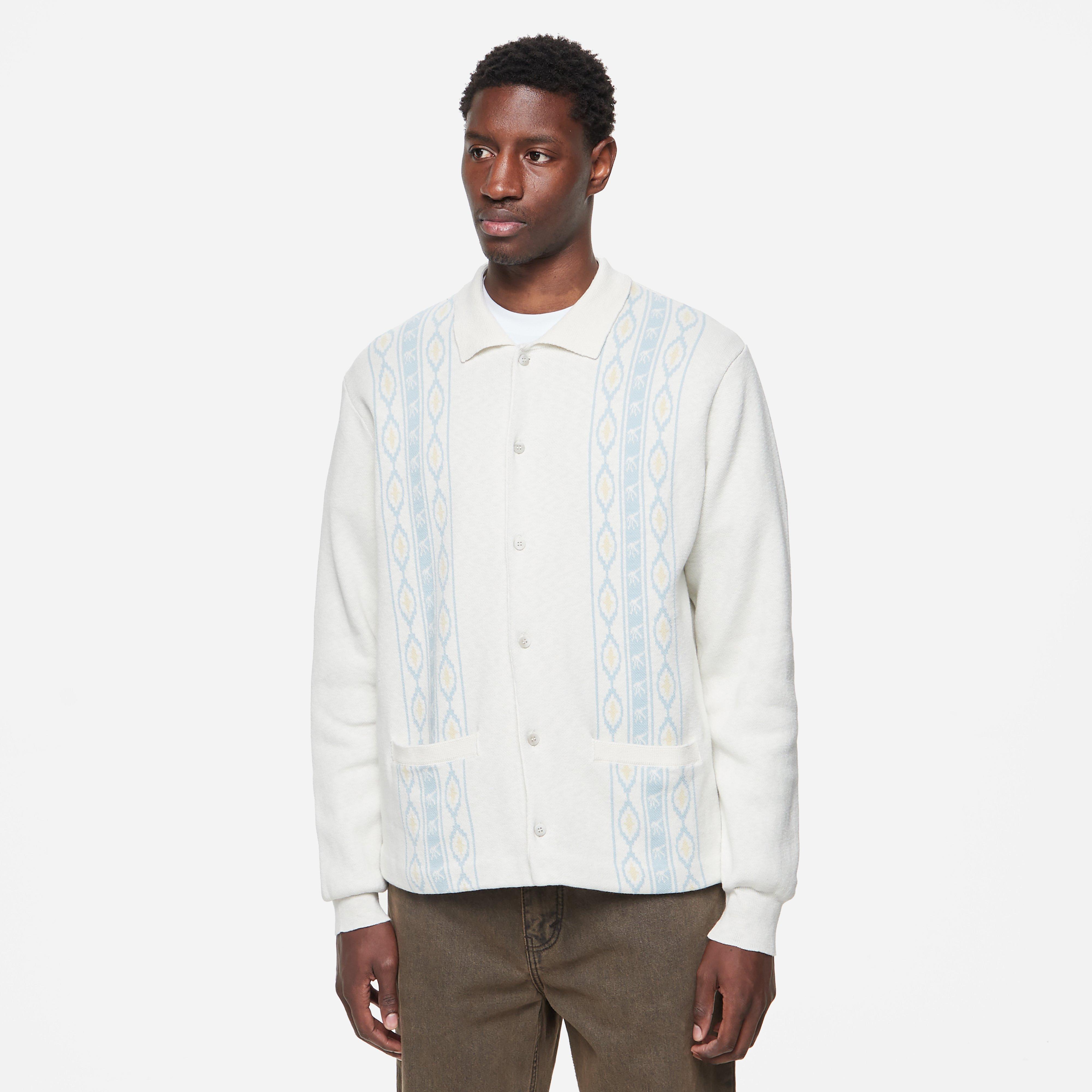 Ecru – 85% cotton/15% linen – Regular fit – 500gsm knit – Jacquard pattern – Made in Italy – Model is 6’1’’ and wears a size medium.