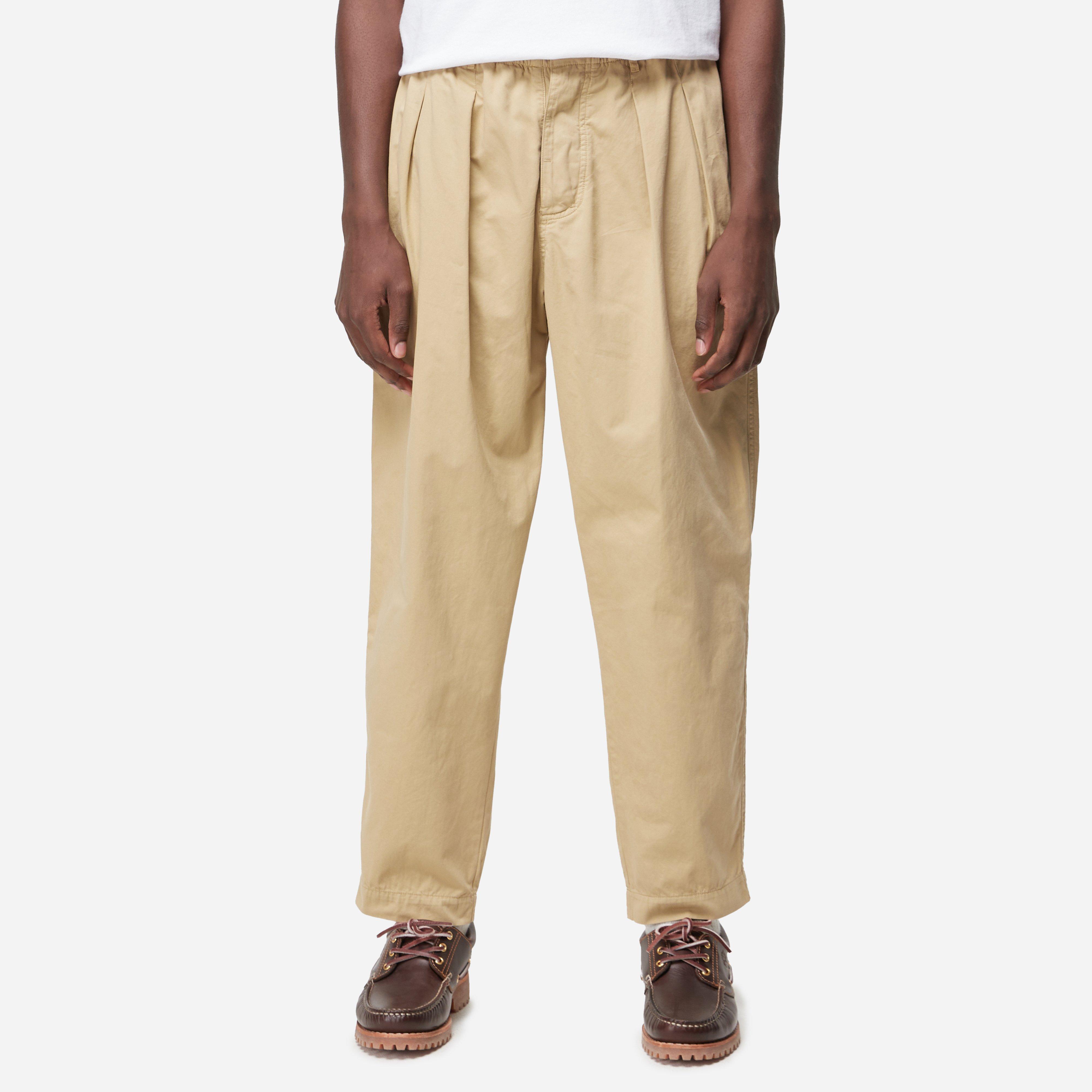 For SS24 Kestin opt for a lightweight cotton twill, garment-dyed for character. Beige - 100% cotton - Elastic drawcord waist - Double pleats - Garment-dyed - Made in Portugal - Regular fit - Model is 6'3" and wears a size medium - Waist size guide (in.) - S=30, M=32, L=34, XL=36