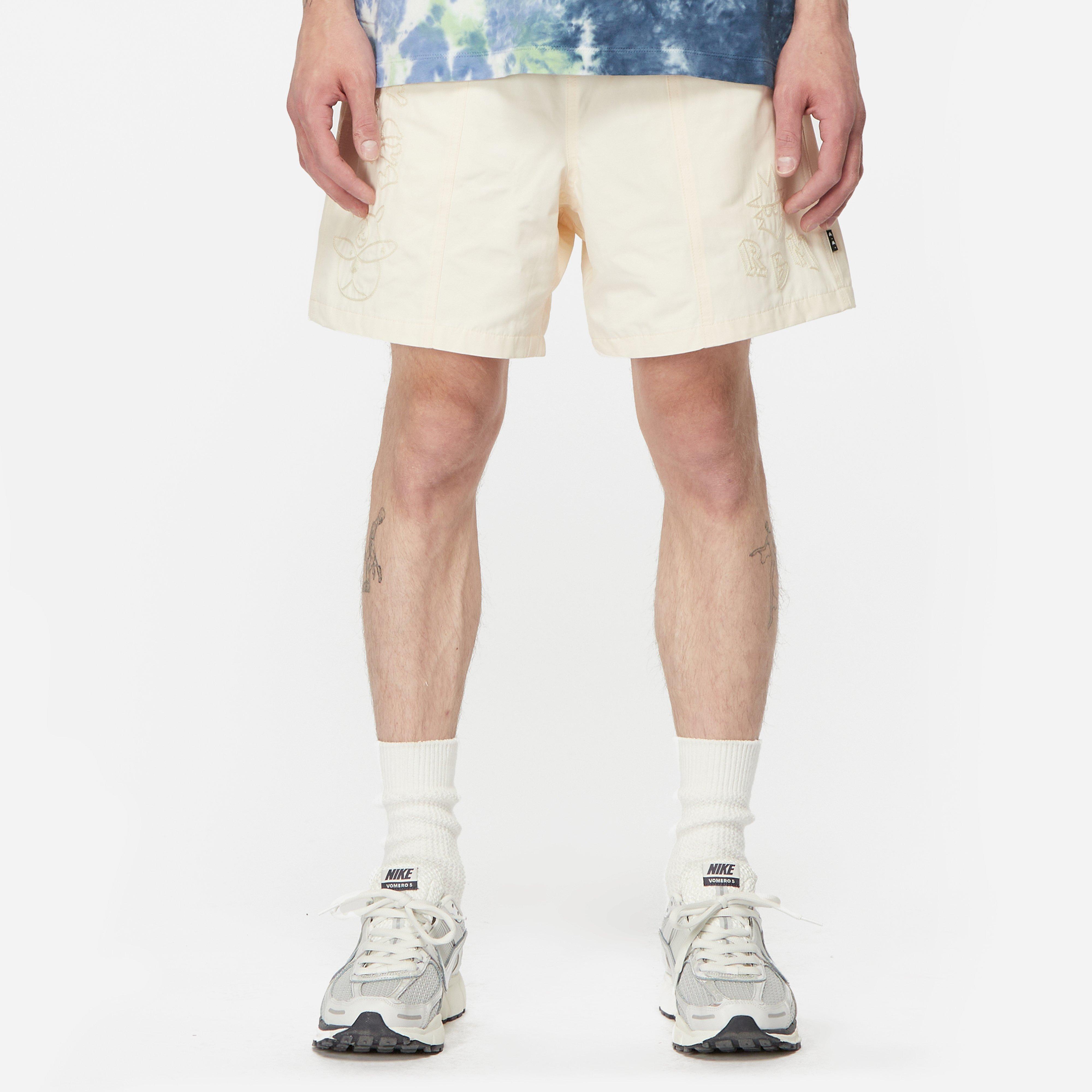 A based creative collective centred around graphic-focused streetwear that immerses itself in pop culture and counterculture. The Deliverance Short is a playful summer style made in a lightweight fabric and subtly decorated with tonal embroidered artwork. Beige - 100% cotton - Elastic waist - Zip pockets - Tonal embroidery - Regular fit, take your normal size - Model is 6'1" and wears a size medium.