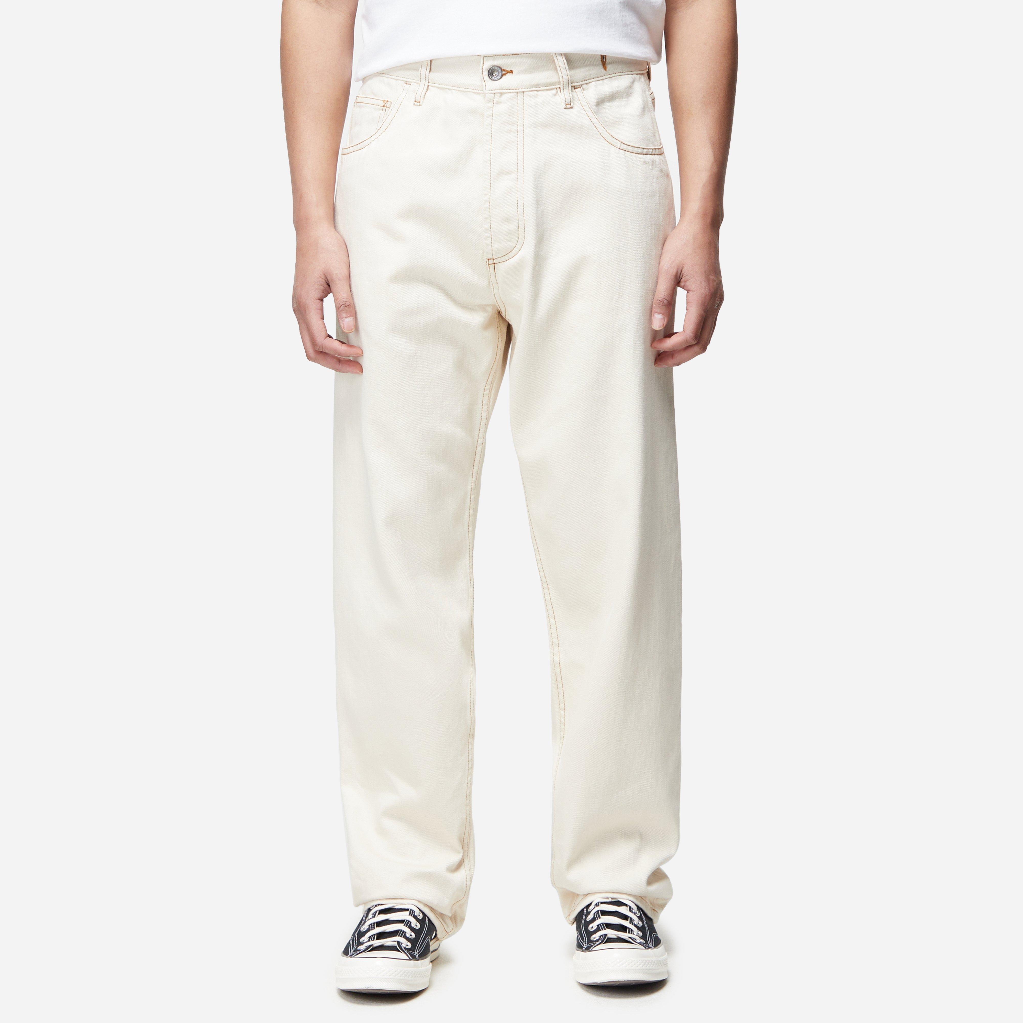 Beige - 100% organic cotton - Five pocket construction - Zip fly - Rear leather patch - Loose, tapered fit - Model is 6'0" and wears a size 32 - Waist size guide (in.) - 30-33.5, 32=35.4, 34=37.4, 36=39.4