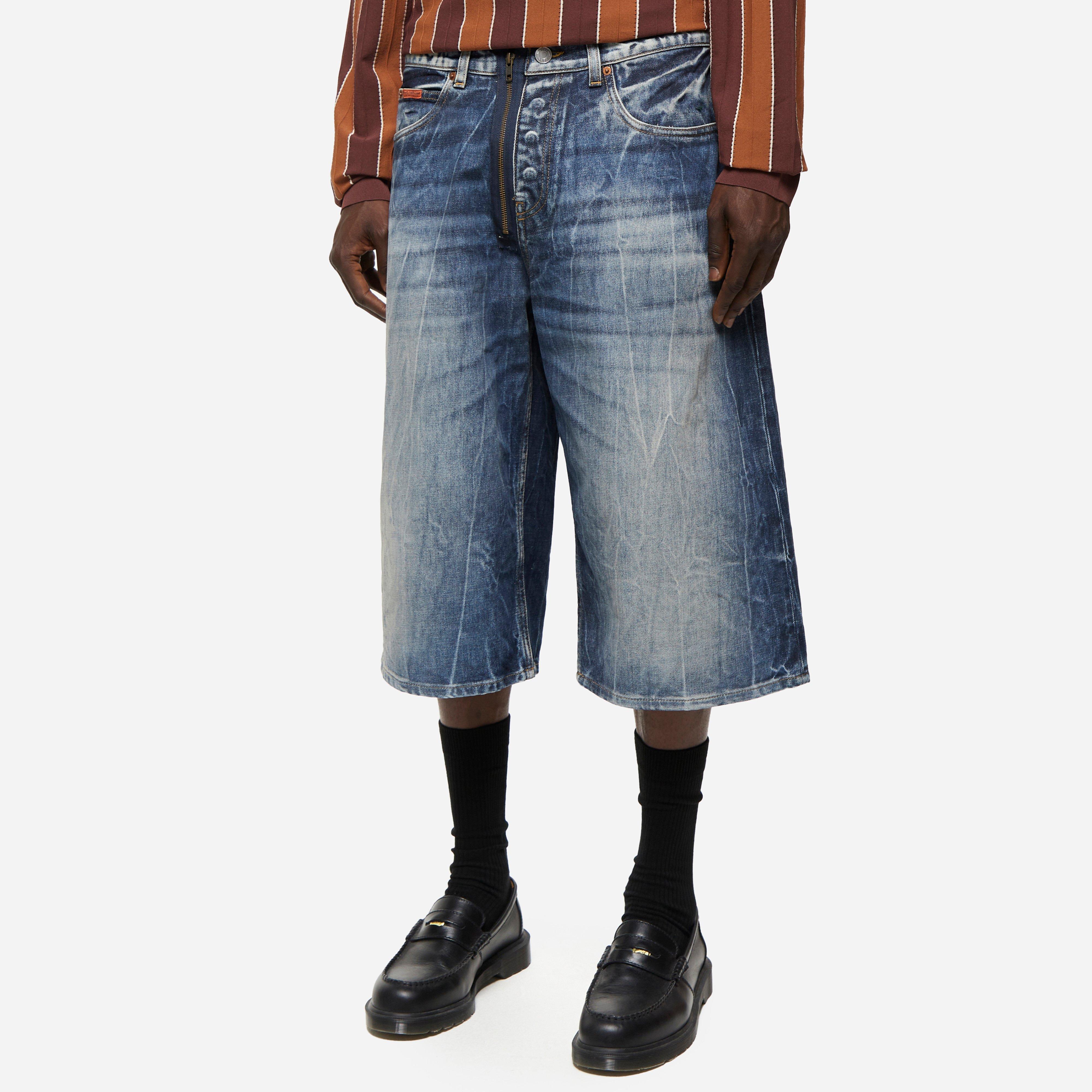 Flash-forward to the current day and she is a critically acclaimed, internationally renowned designer who channels strong underground influences through her eclectic collections. Blue - 100% cotton - 5 pocket - Woven label - Oversized fit - Exposed fly front - Distressed - Model is 6'2" and wears size medium