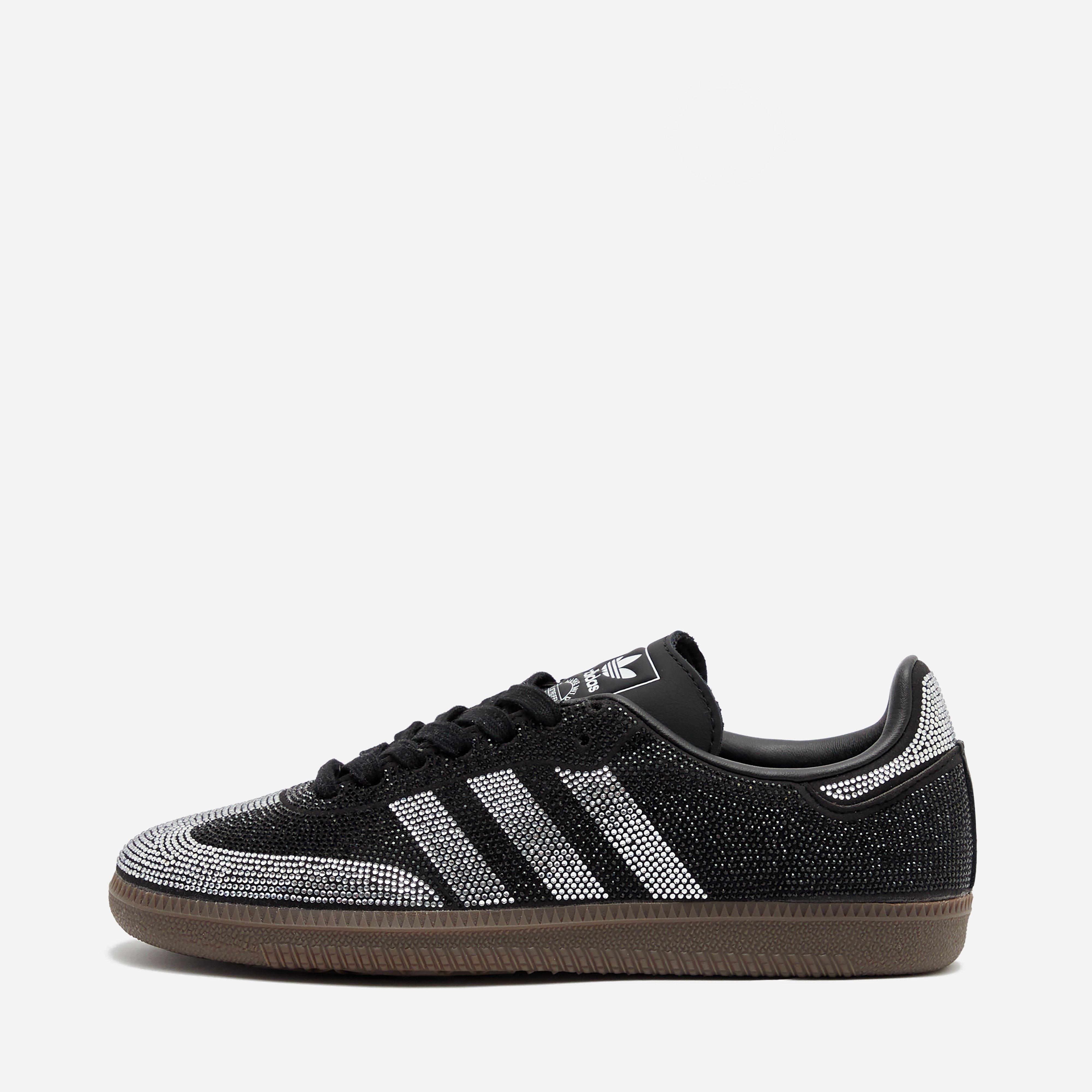 Black - Leather & rhinestone upper, synthetic sole - Suede underlay - T-toe - Trefoil logo - Dark gum outsole - Style code: IH9052