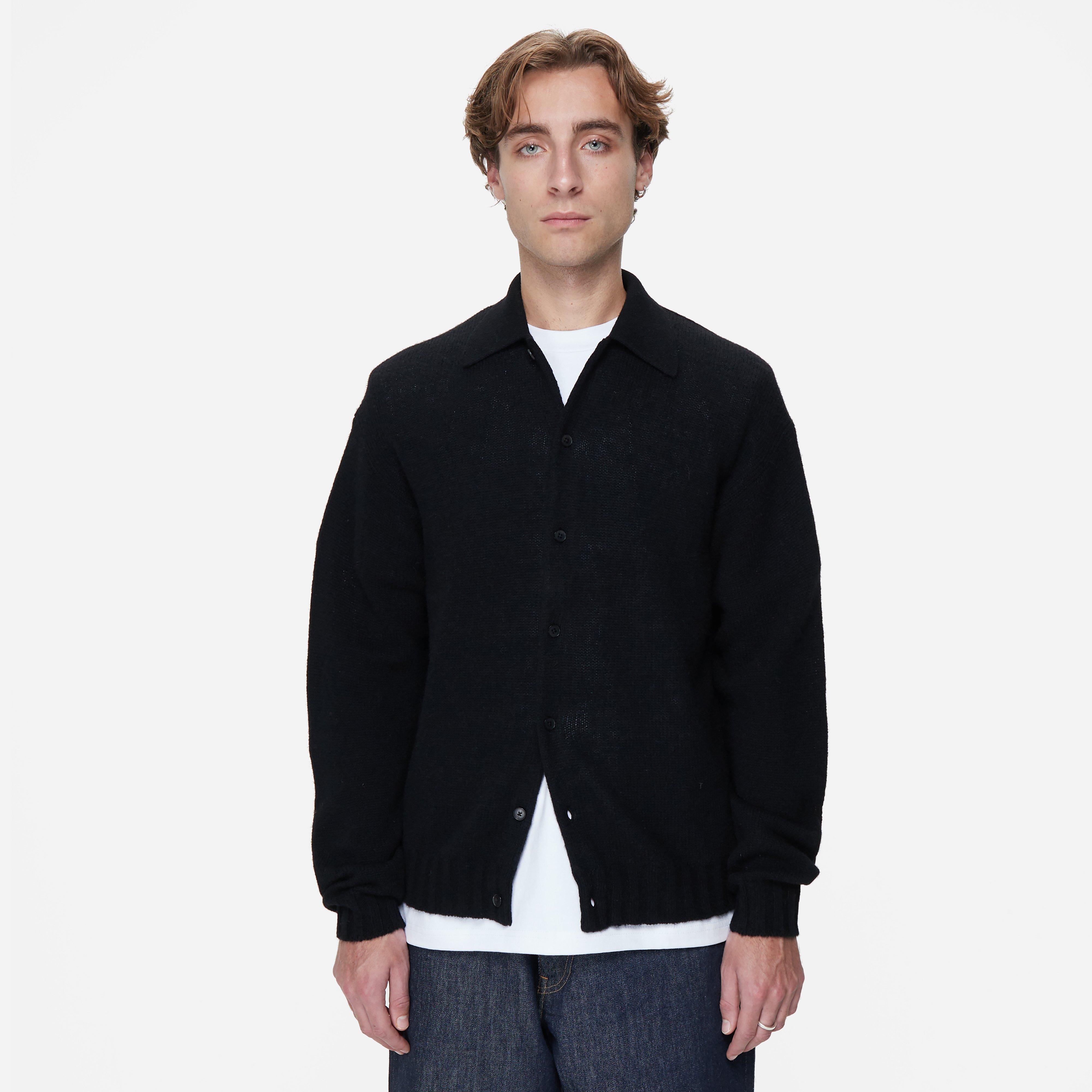 This piece is an exquisite knitwear made from Shetland wool and cashmere with a low gauge. Black - Relaxed fit - Slightly cropped - 62% wool, 38% cashmere - Model is 5'11" and wears a size 5.