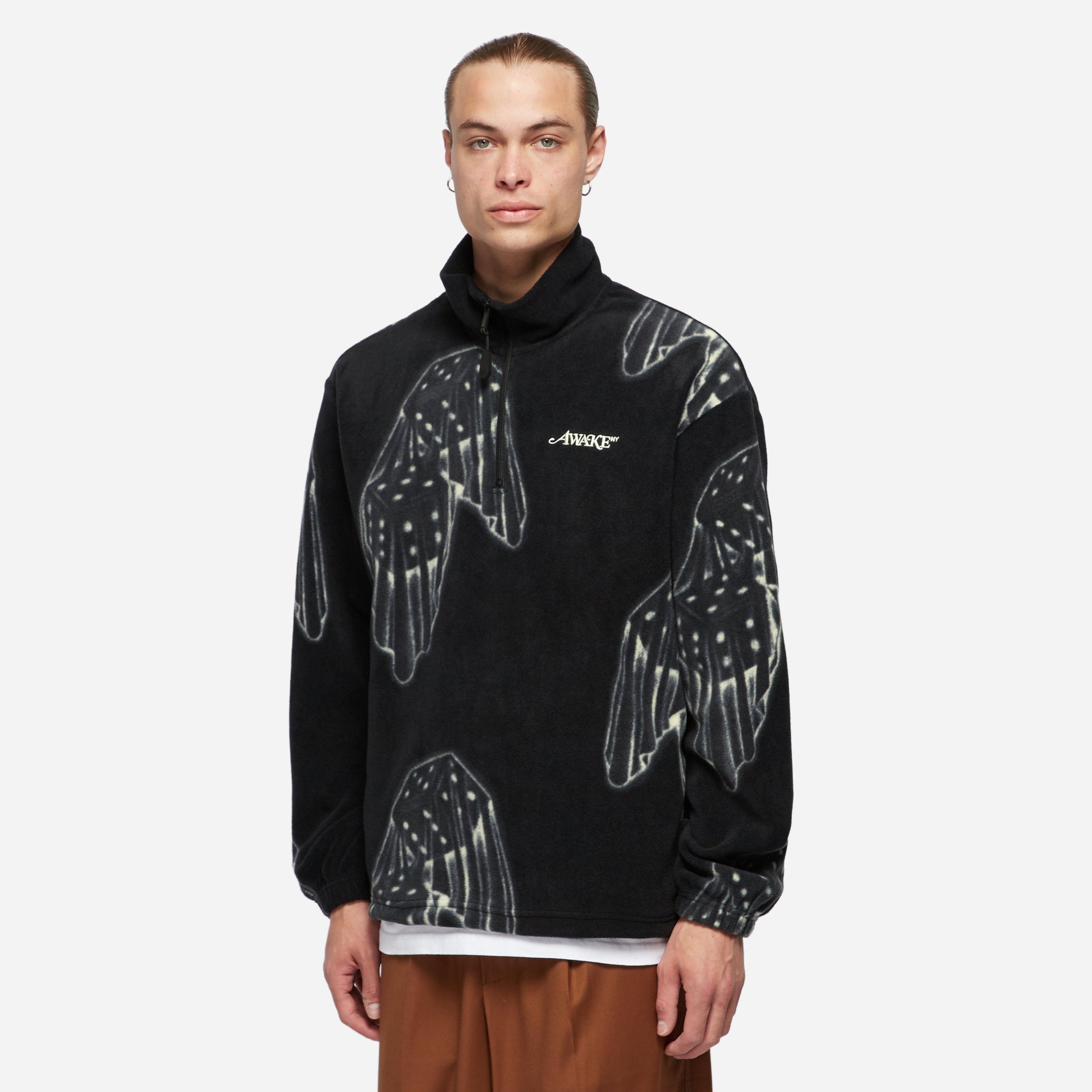 The Dice Quarter Zip is a cosy fleece given decoration with a playful printed dice theme and Awake NY embroidery. Black - 100% polyester - Elastic trims - Printed graphic - Embroidered branding - Toggle hem - Regular fit, take your normal size - Model is 6'1" and wears a size medium."