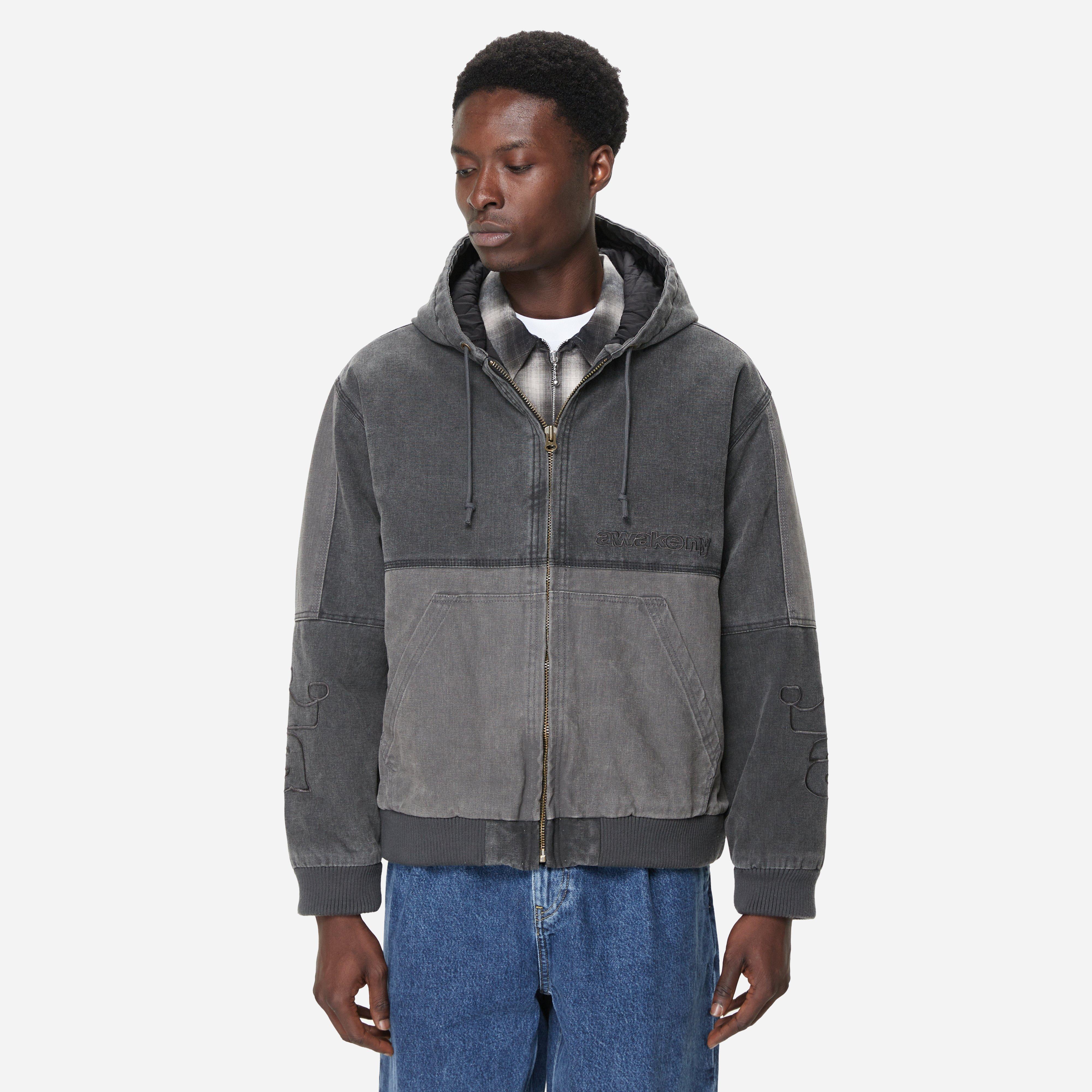 Grey – 100% cotton – Relaxed fit – Stonewashed fabric – Quilt padded lining – Neutral contrast panels – Drawstring hood – Ribbed trims – Logo embroidery – Model is 6’2’’ and wears a size medium.
