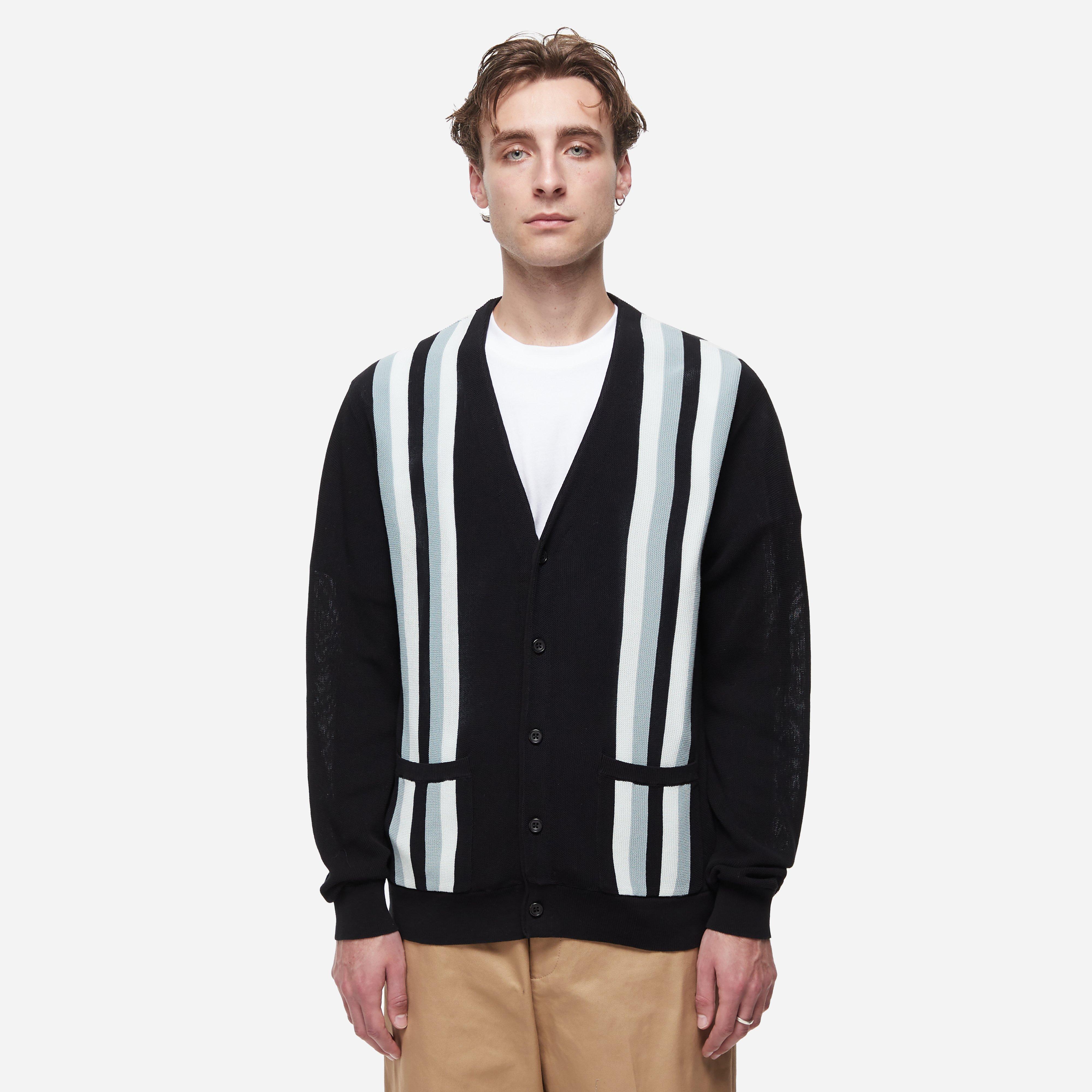 Black - 100% cotton - Welt pockets - V neck - Ribbed cuffs - Model is 5'11" and wears a size medium.