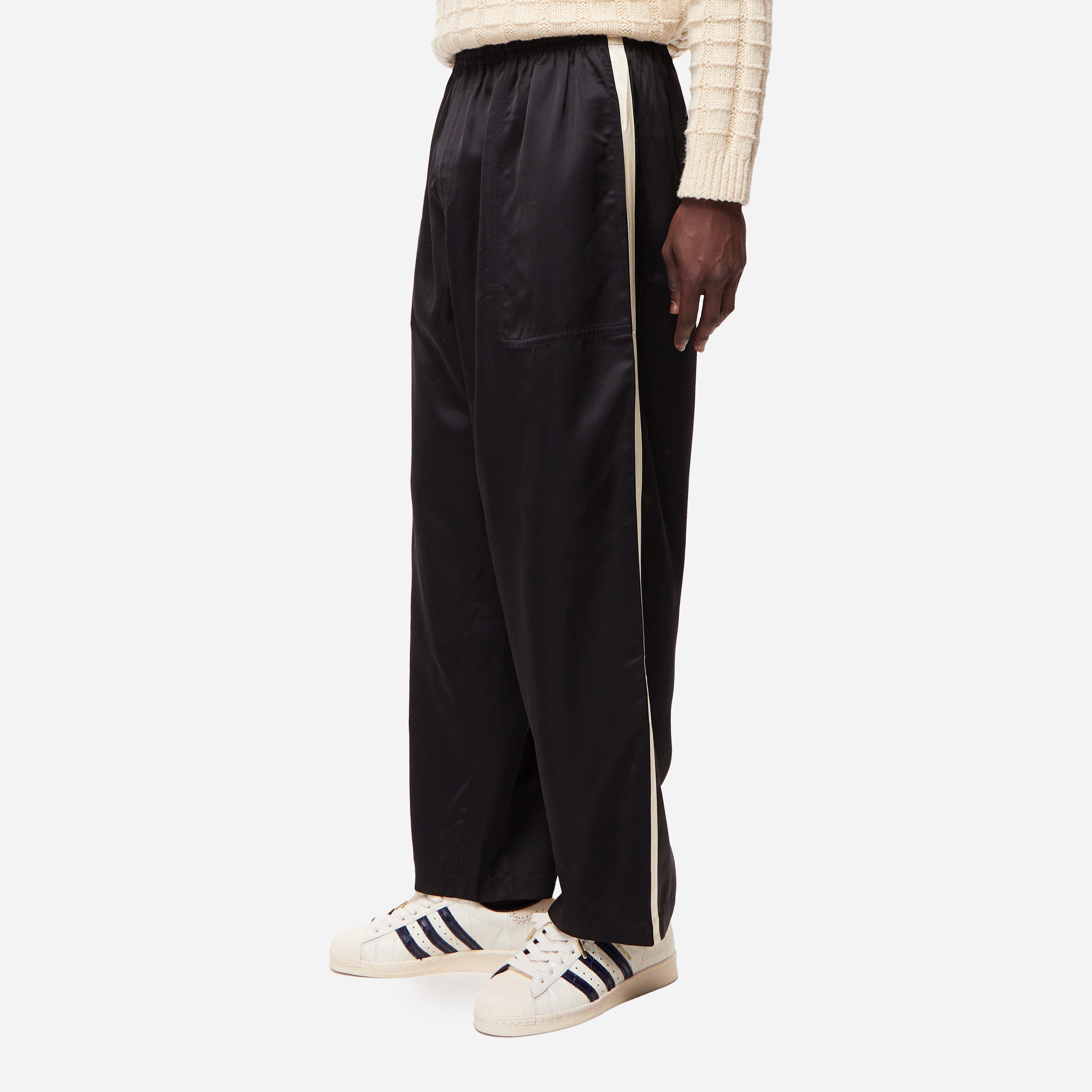 Collections are inspired by old family memories, places, and the personal narratives of intimate relations. The Satin Track Pants are based on mid century warm up pants. Black - 56% viscose, 44% modal - Elastic waist - Model is 6'2" and wears size medium.