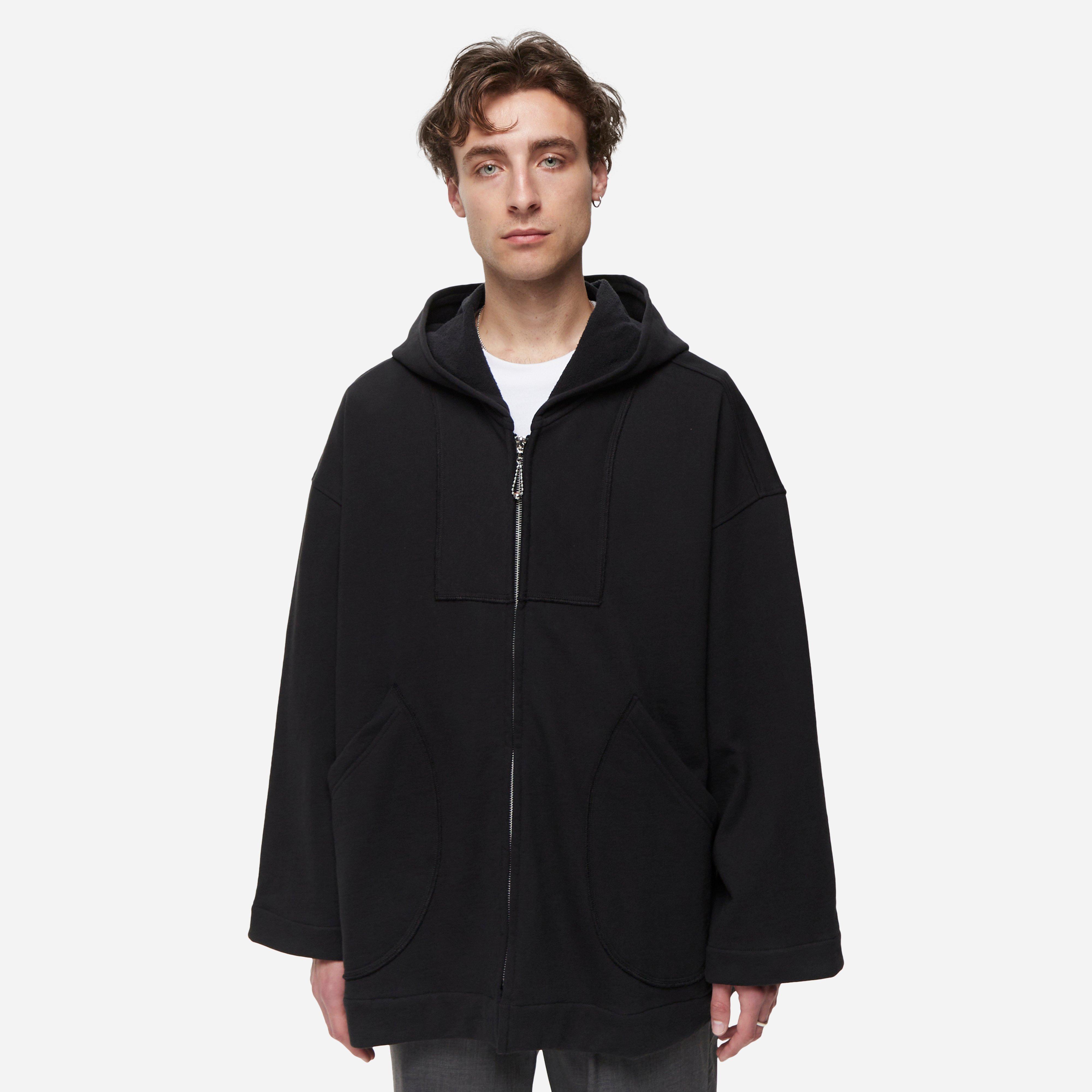 Collections are inspired by old family memories, places, and the personal narratives of intimate relations. The Sideline Jacket is a reproduction of a "bench coat" from the 1960s worn by football players. Black - 100% cotton - Made in Peru - Wide silhouette - Zip up hood - Side pockets - Model is 5'11" and wears a size medium.