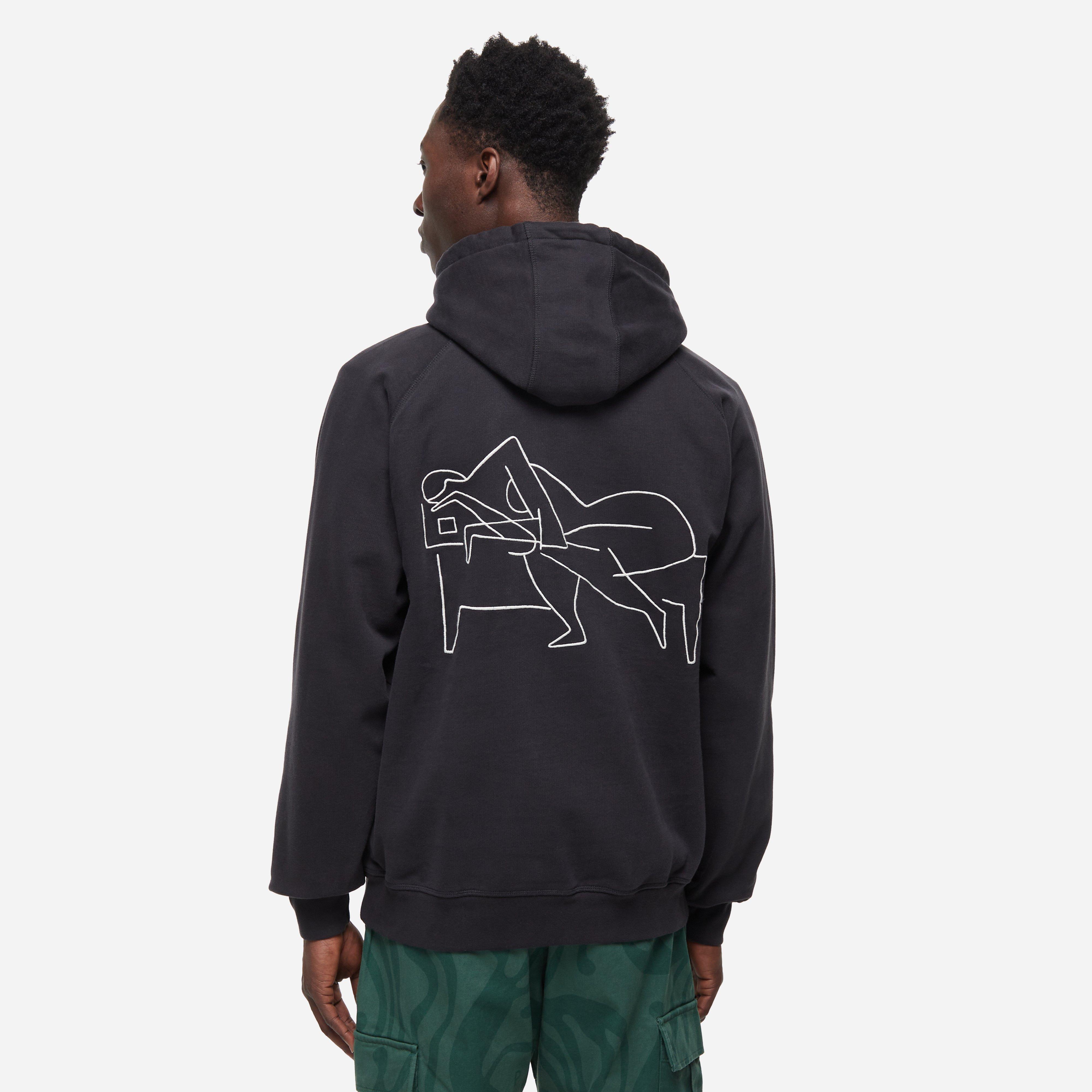 Black - 100% cotton - Raglan sleeves - Semi brushed - 3 piece hood - Made in Portugal - Parra logo embroidery - Model is 6'2" and wears size medium.