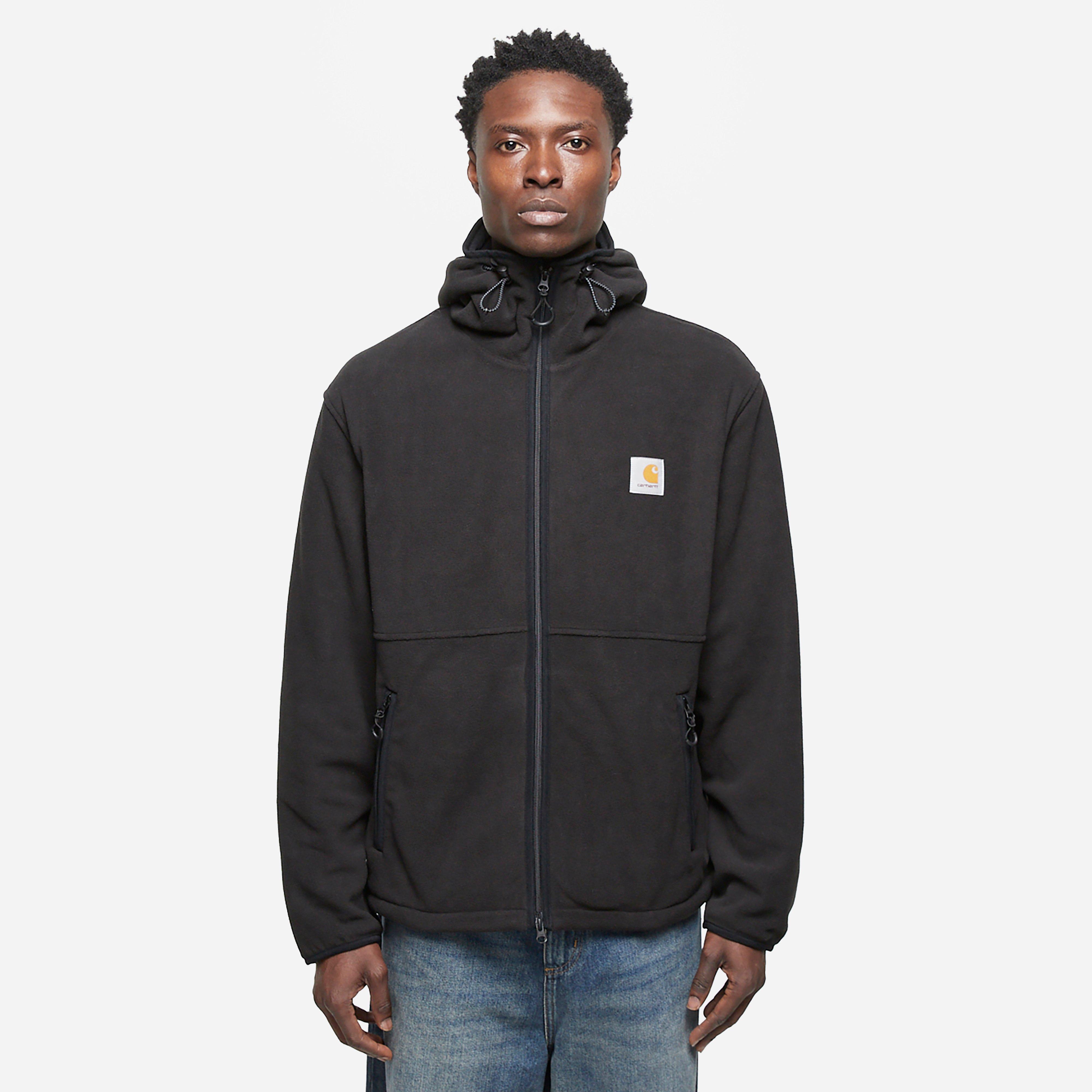 The Blevin Liner is composed of midweight fleece fabric. Black – 100% polyester – Adjustable hood – Mesh lining – Two-way zip – Elasticated cuffs – Reflective Square Label – Model is 6’2.5’’ and wears a size medium.