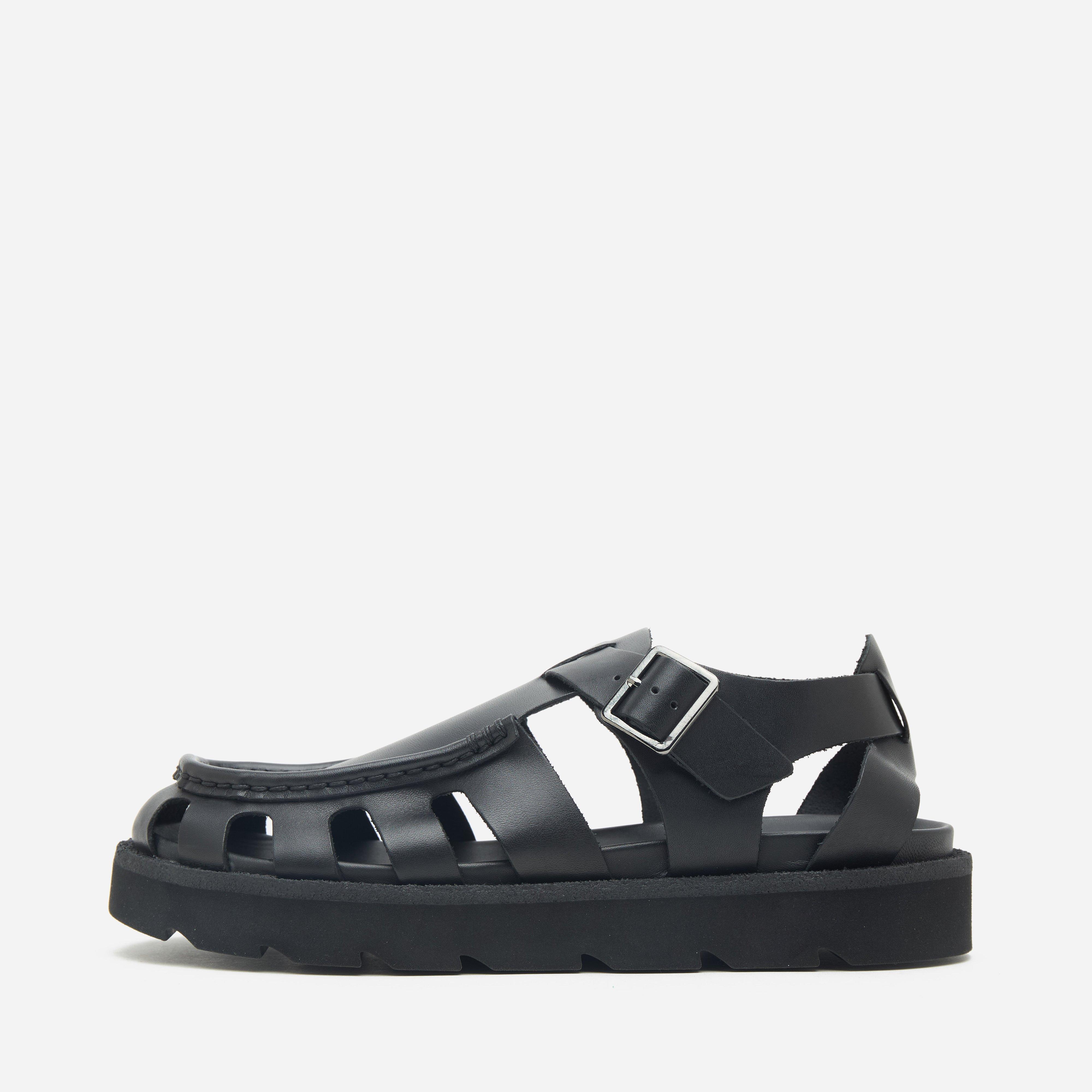 Here Clarks take design inspiration from the Wallabee Meare Buckle and transfer it into the Meadow Buckle sandal for summer, that has a fisherman-style profile in black leather. Black - Leather upper -Adjustable strap - Moccasin construction - EVA sole - Moulded footbed.