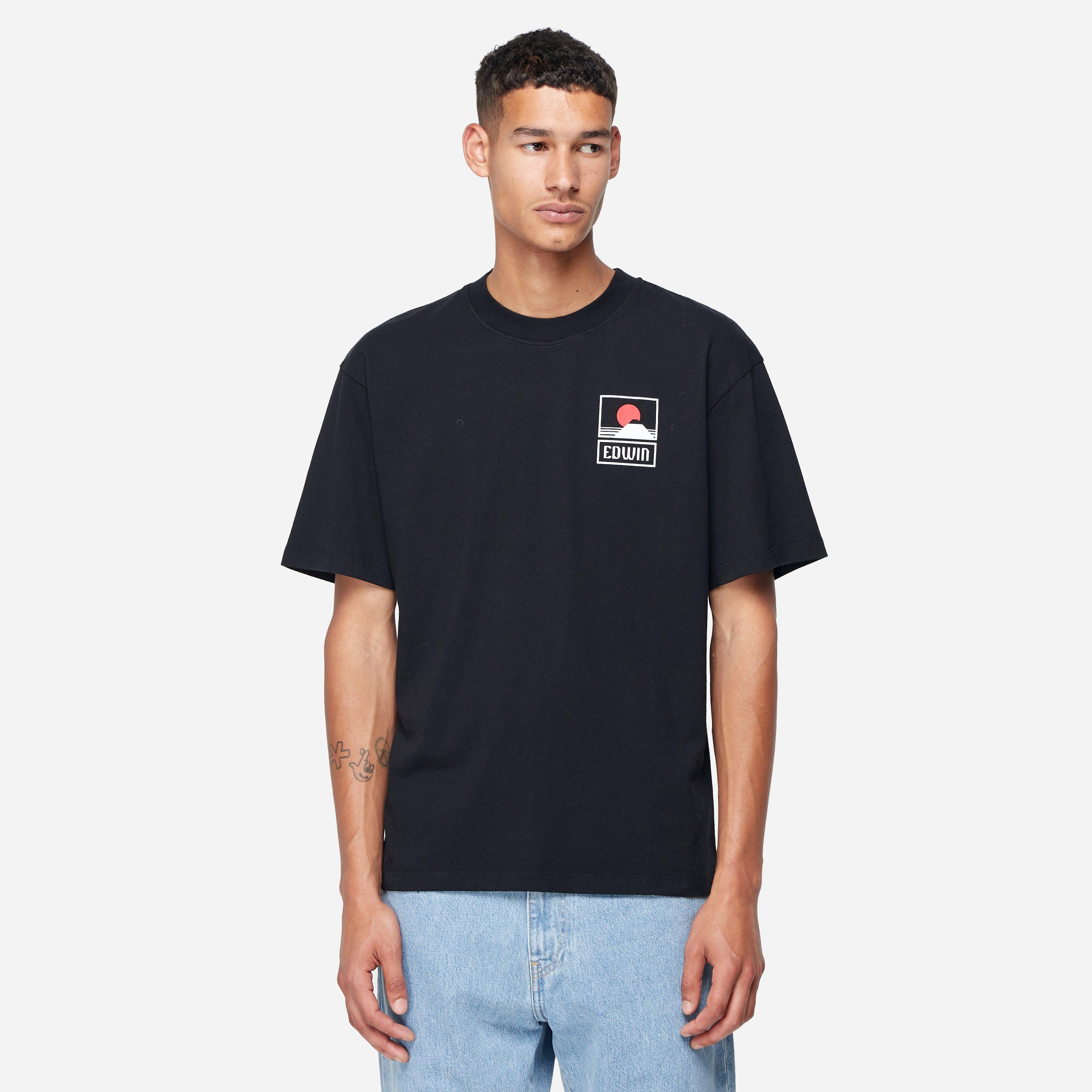 Japanese label Edwin's Sunset No Fuji T-Shirt is a garment washed tee with graphics to the front and rear.