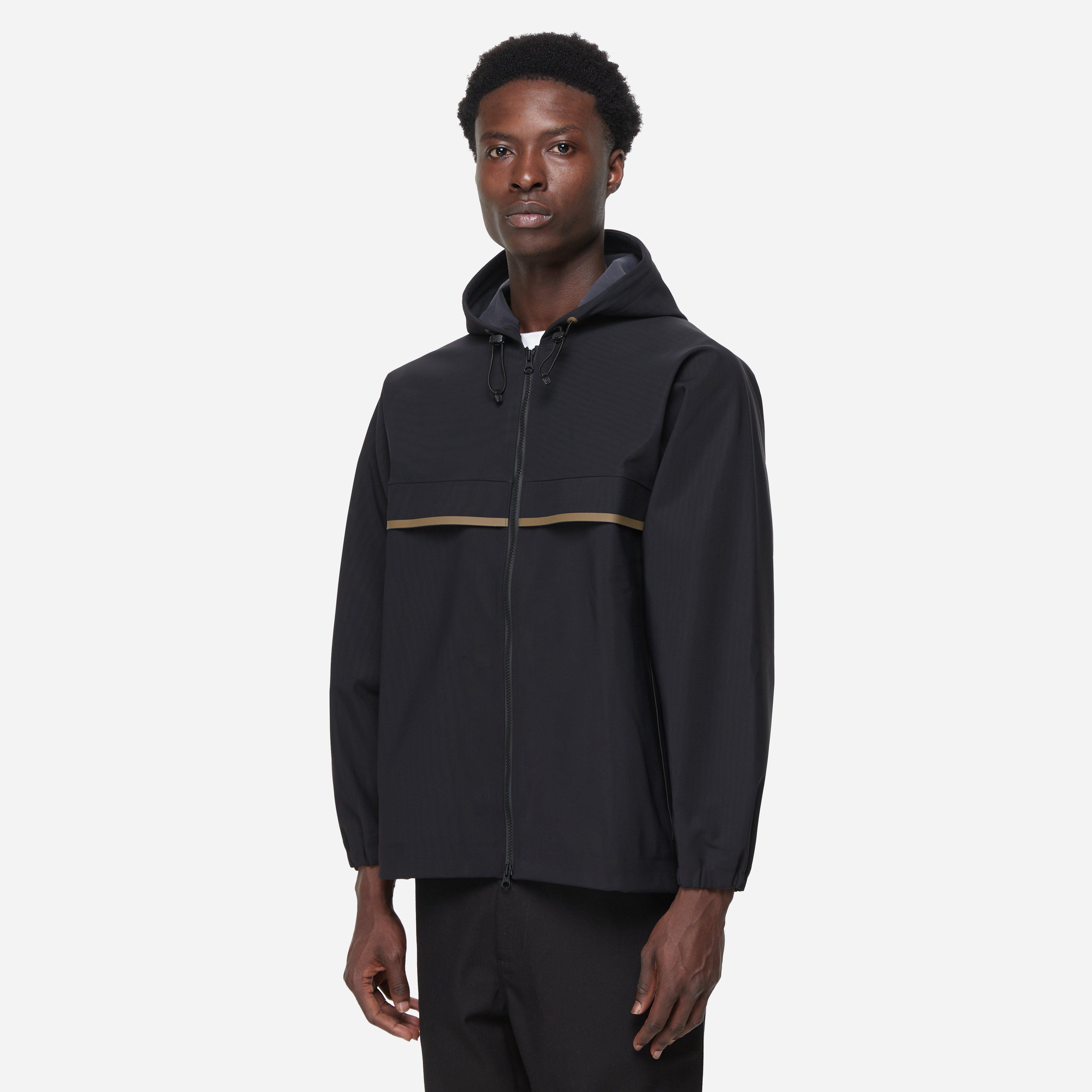 The look of the collection is subtle - this Jacket is based on a military off-duty style from the late 1980's, given technical impetus with laser cutting and bonded taped seams. The fabric is a waterproof stretch nylon, accented with fleece lining for use across seasons. Black - 73% polyamide, 27% elastane (PEF-certified coated Sensitive stretch nylon) - Panelled construction - Drawstring hem and hood - Zip side pockets - Bonded fleece lining - Taped seams - Rear storm flap and vents - Made in Italy - Regular fit, take your normal size - Model is 6'1" and wears a medium.