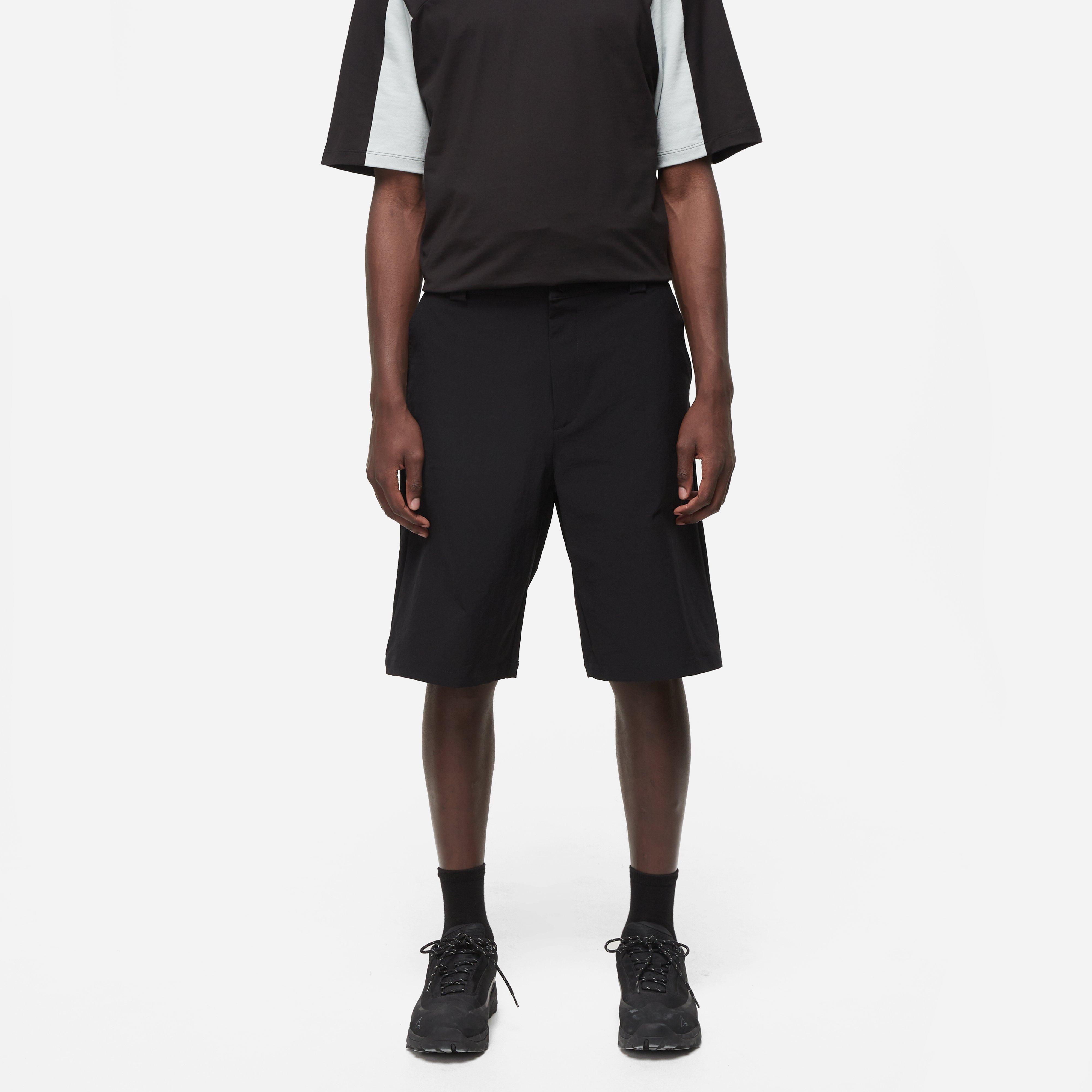 Black – 92% nylon/8% elastane – Wide belt loops – Snap button closures – IBQ woven label – Coarse finish – Model is 6’1’’ and wears a size medium.