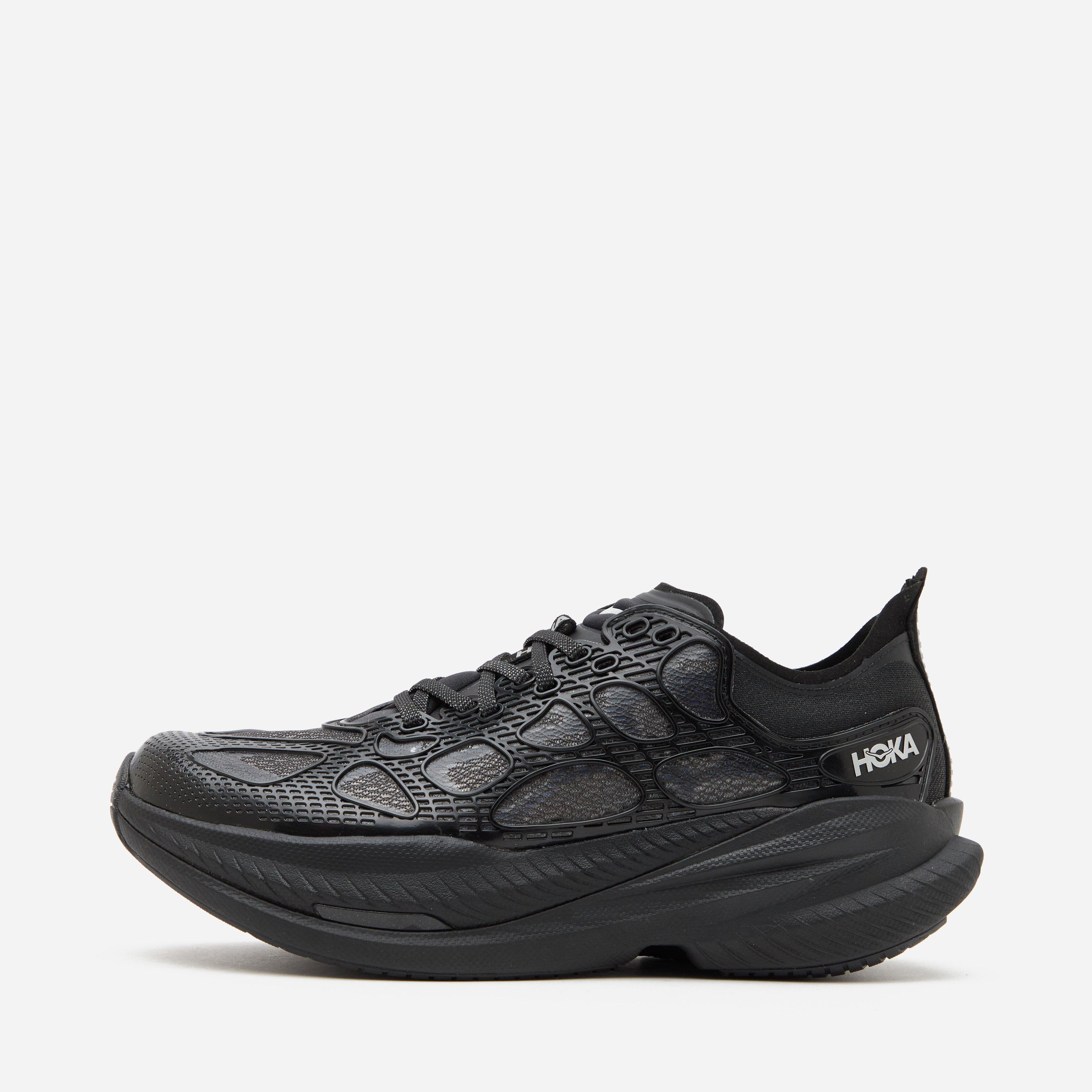 HOKA's Mach X Caged pairs an architectural, TPU cage-like upper and translucent mesh with fluid cut outs producing a layered aesthetic.