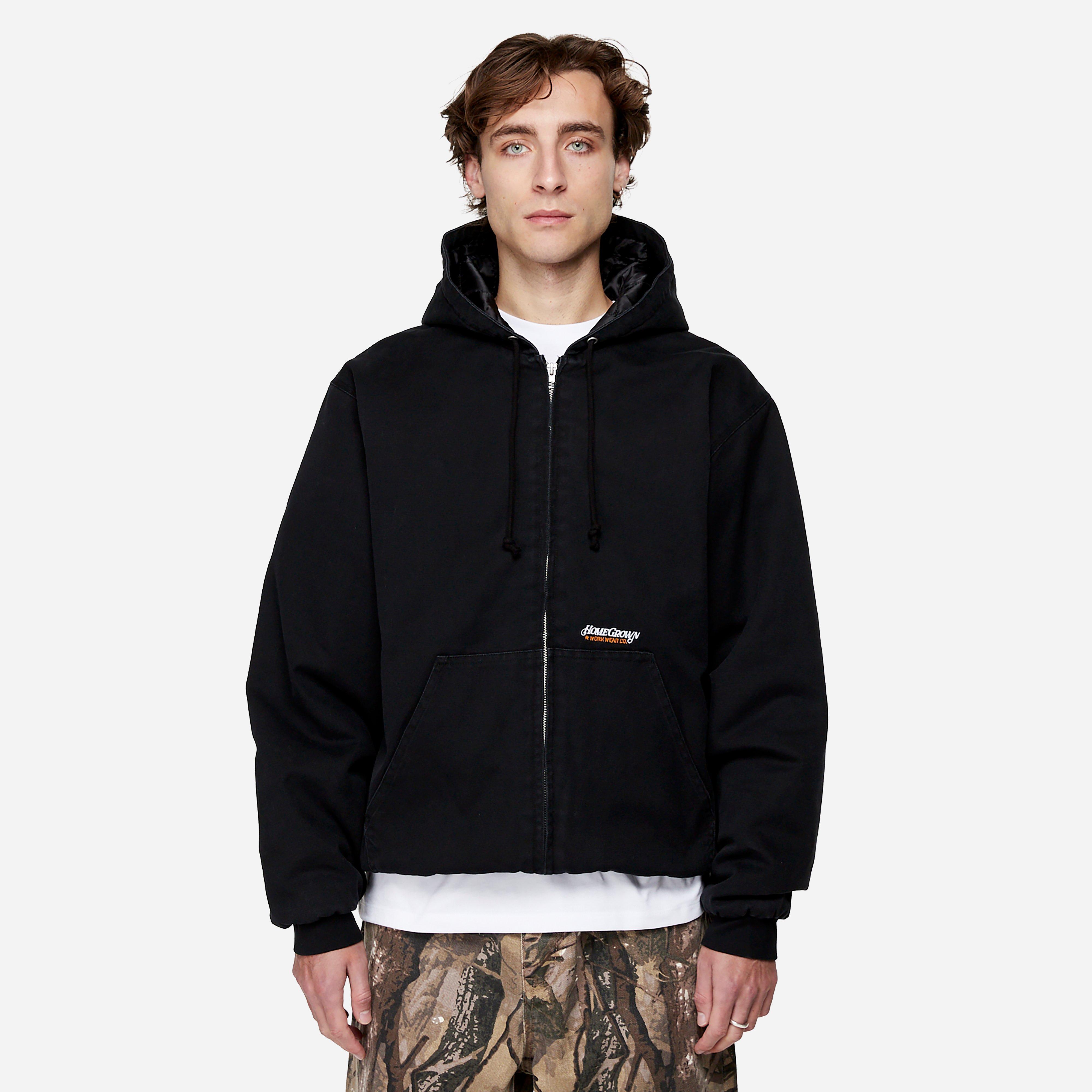 Black – 100% cotton – Roomy fit – Cropped body – Heavyweight canvas fabric – Quilt lining – Rib cuff sleeves – Full zip closure – Logo embroidery – Model is 6’2’’ and wears a size medium.