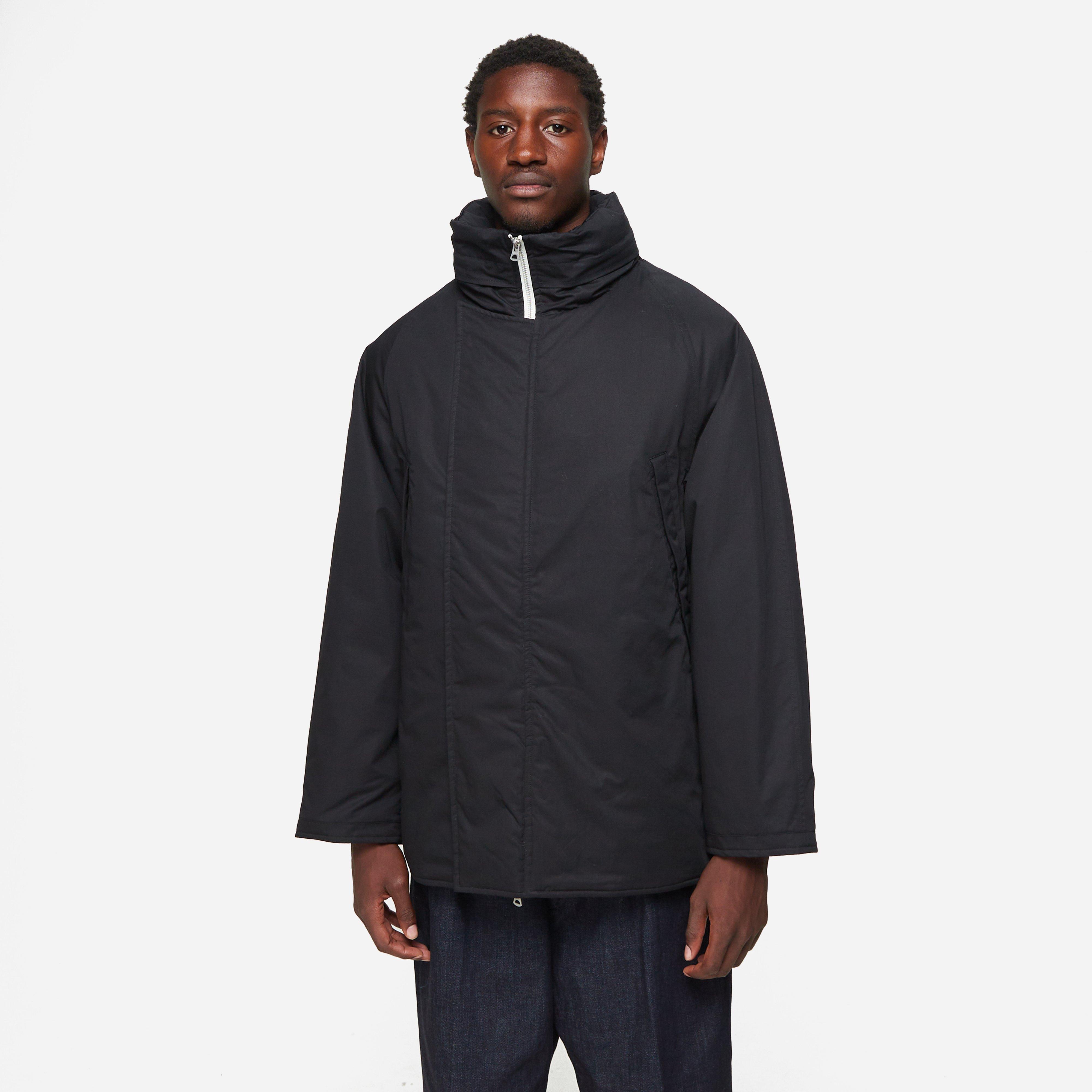 The Upper Deck Jacket is high-density wove from cotton twill. Black – 100% cotton – Ripstop lining – Recycled PRIMALOFT insulation – Model is 6’1’’ and wears a size medium.