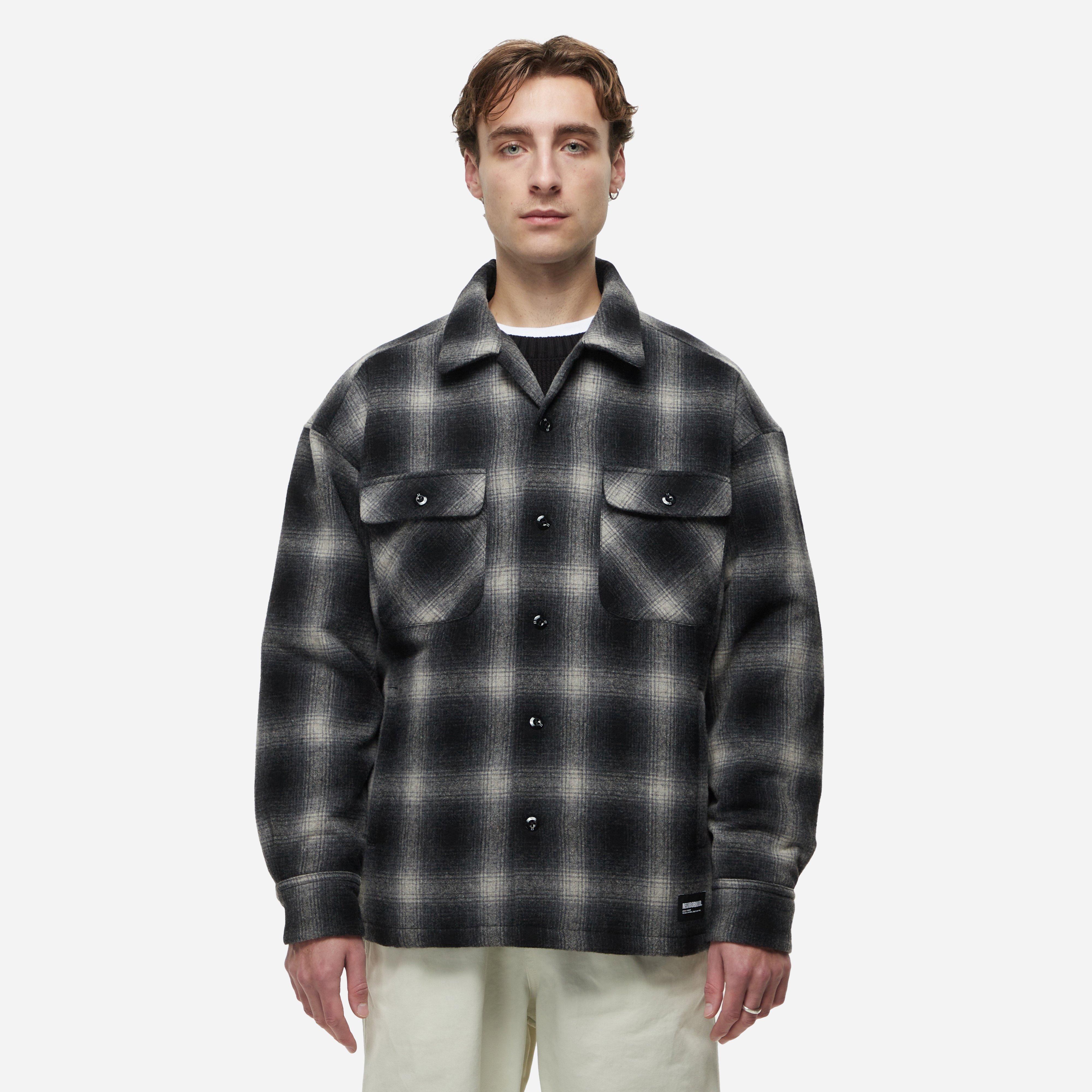 Neighborhood's CPO shirt made of premium wool with a check arrangement while diamond quilting on the lining delivers lightweight padding.