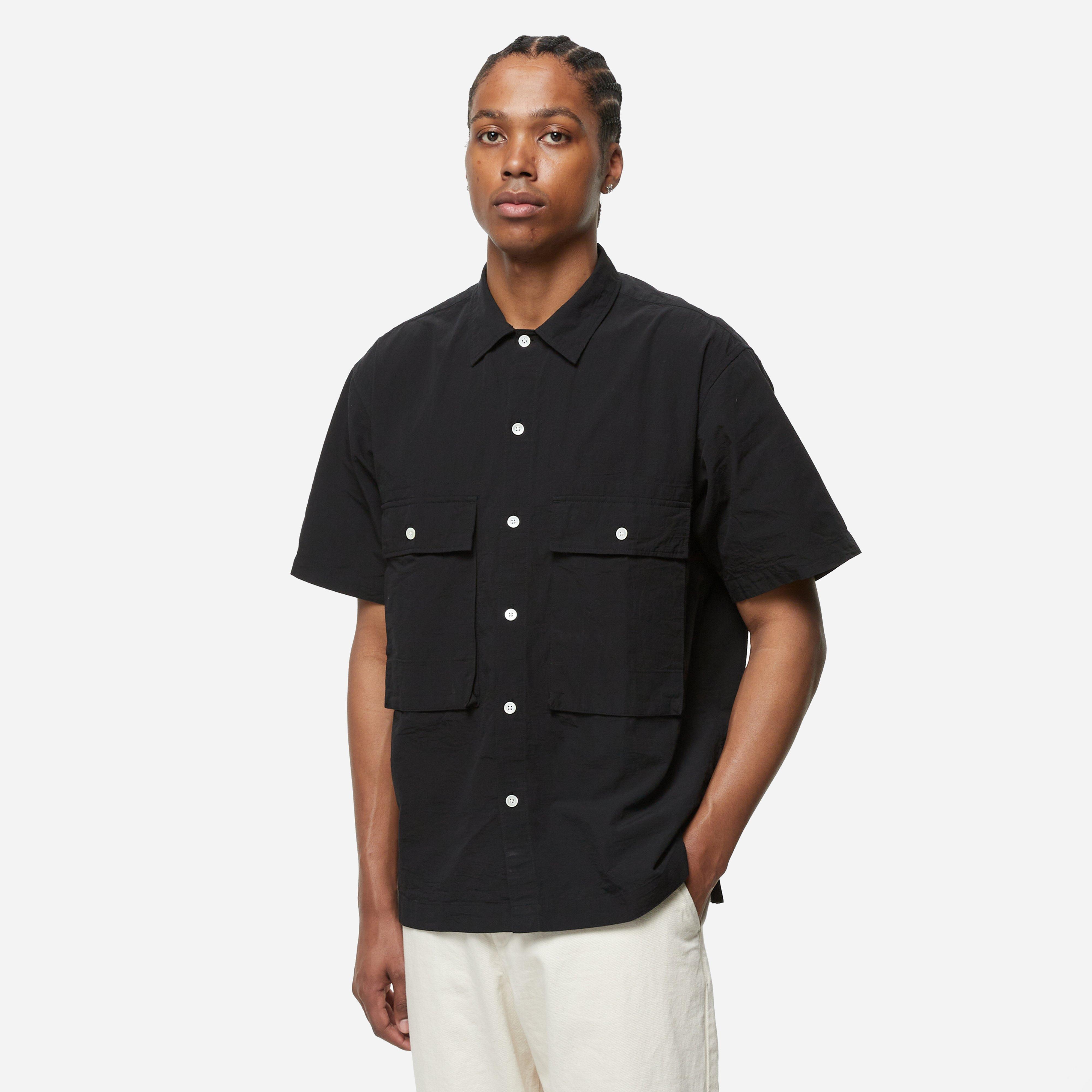 The Ivan Shirt is made from textured organic cotton ideal for summer wearing. Black - 100% organic cotton - Chest pockets - Button closure - Boxy fit - Straight hem - Model is 6'2" and wears a size medium.