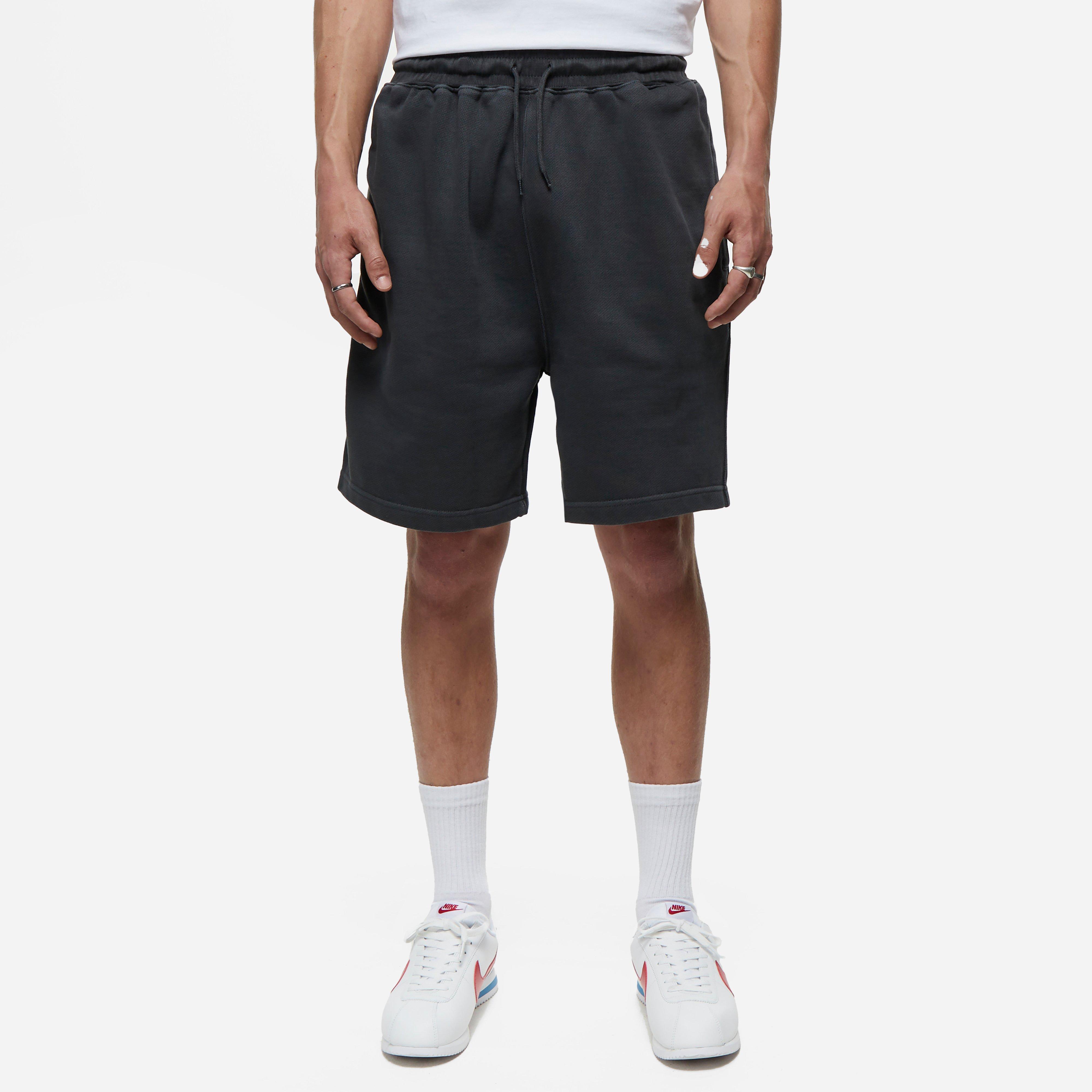 Washed black - 100% cotton - 500gsm - Elastic drawcord waist - Side pockets - Model is 6'2.5" and wears a size medium