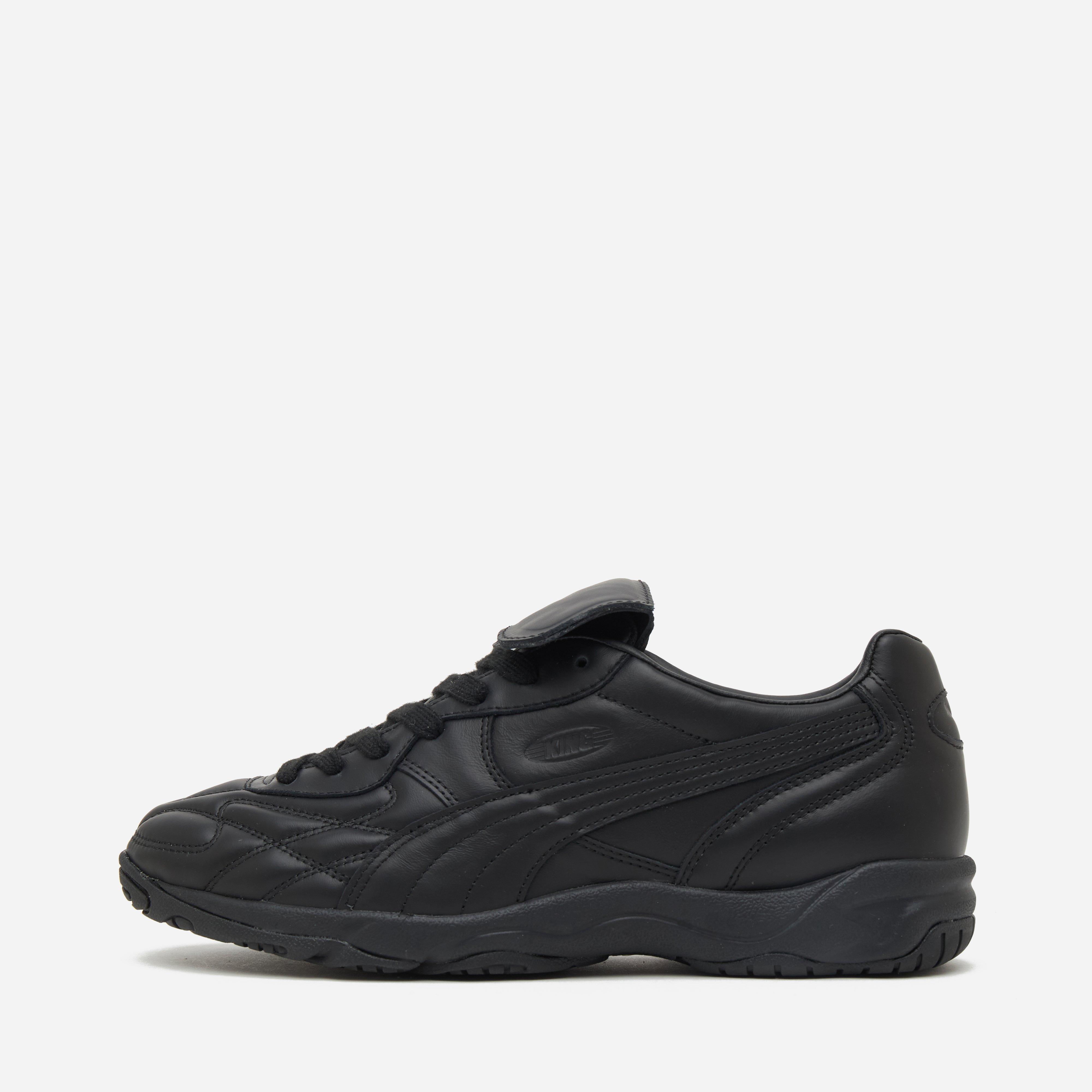 Lack of Guidance celebrate the history of PUMA's King Indoor with a pitch black leather rendition to coincide with 'King's Night' and the launch of PUMA's 'Royalty' pack; the latter of which is inspired by legends of the game who wore the beloved model such as Johan Cruyff and Diego Maradona.