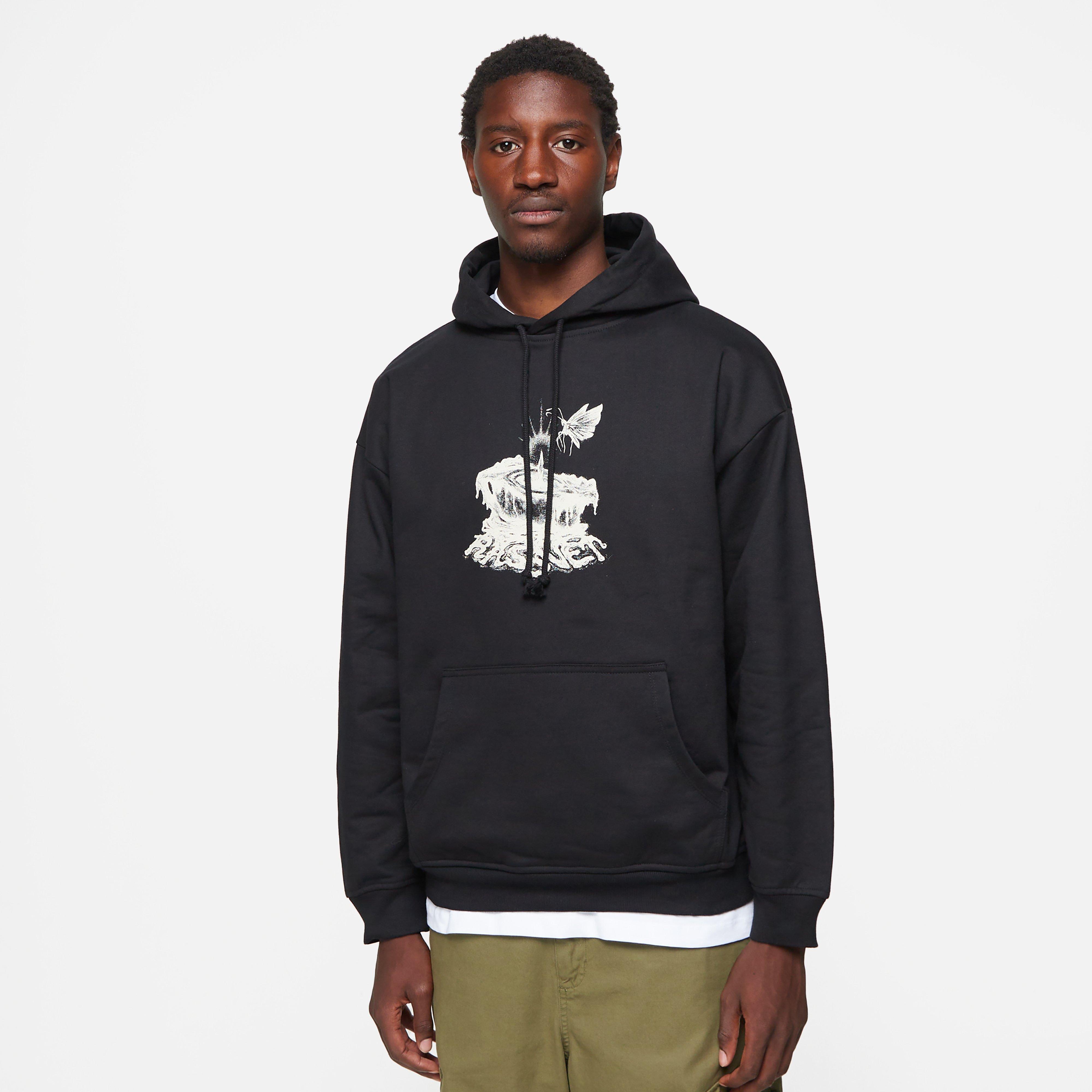 Black – 100% cotton – Boxy fit – Drawstring – Kangaroo pocket – Graphic print – Model is 6’1’’ and wears a size medium.