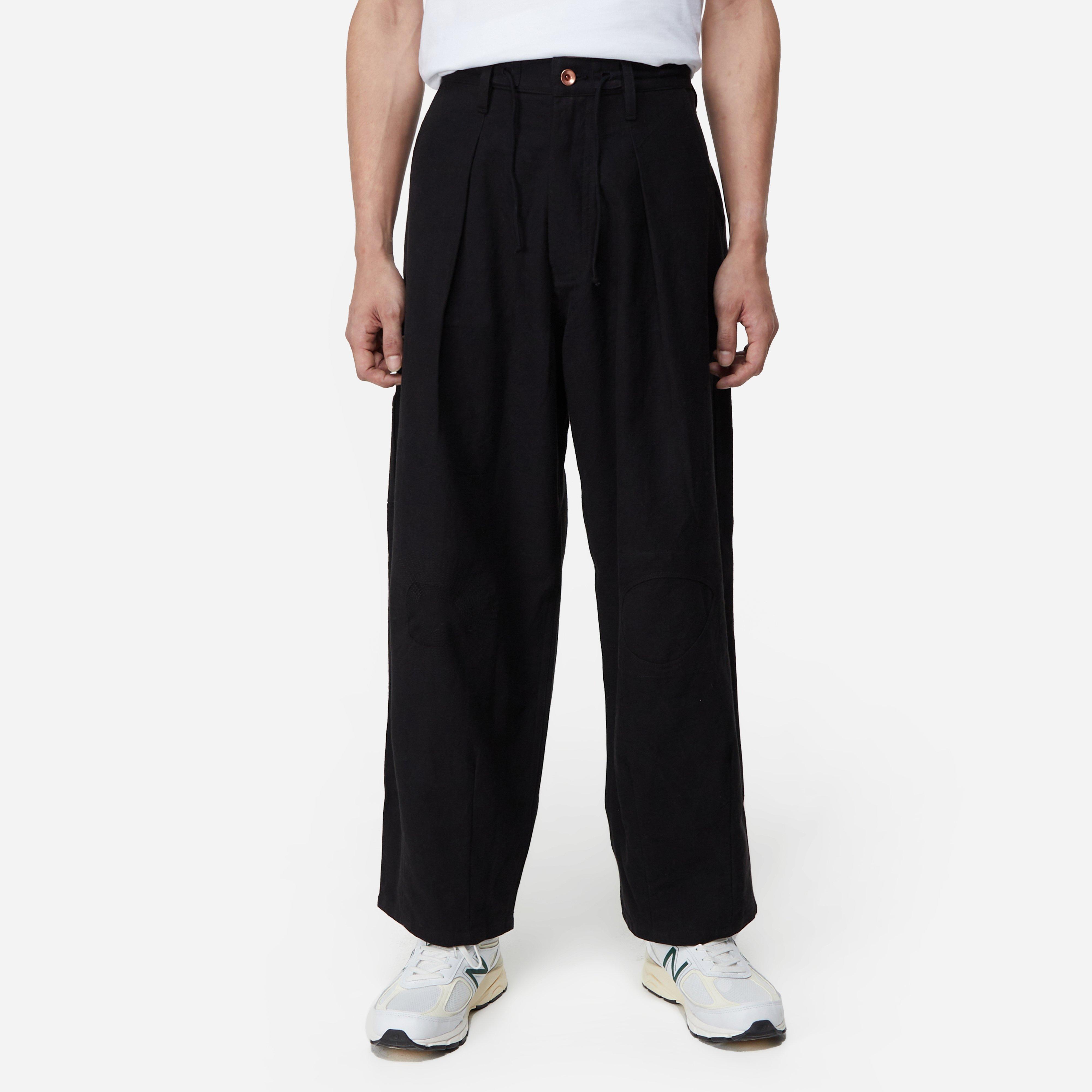 The Pant's deep black hue is rendered by natural dyes and as with each Story style, the brand creates character through handwoven patches. Black - 100% organic cotton - Handwoven patches - Hammer loop - Zip fly - Drawcord waist - Naturally dyed - Relaxed fit, take your normal size - Model is 6'1" and wears a size medium - Waist size guide (in.) - S=33, M=35, L=37, XL=39.