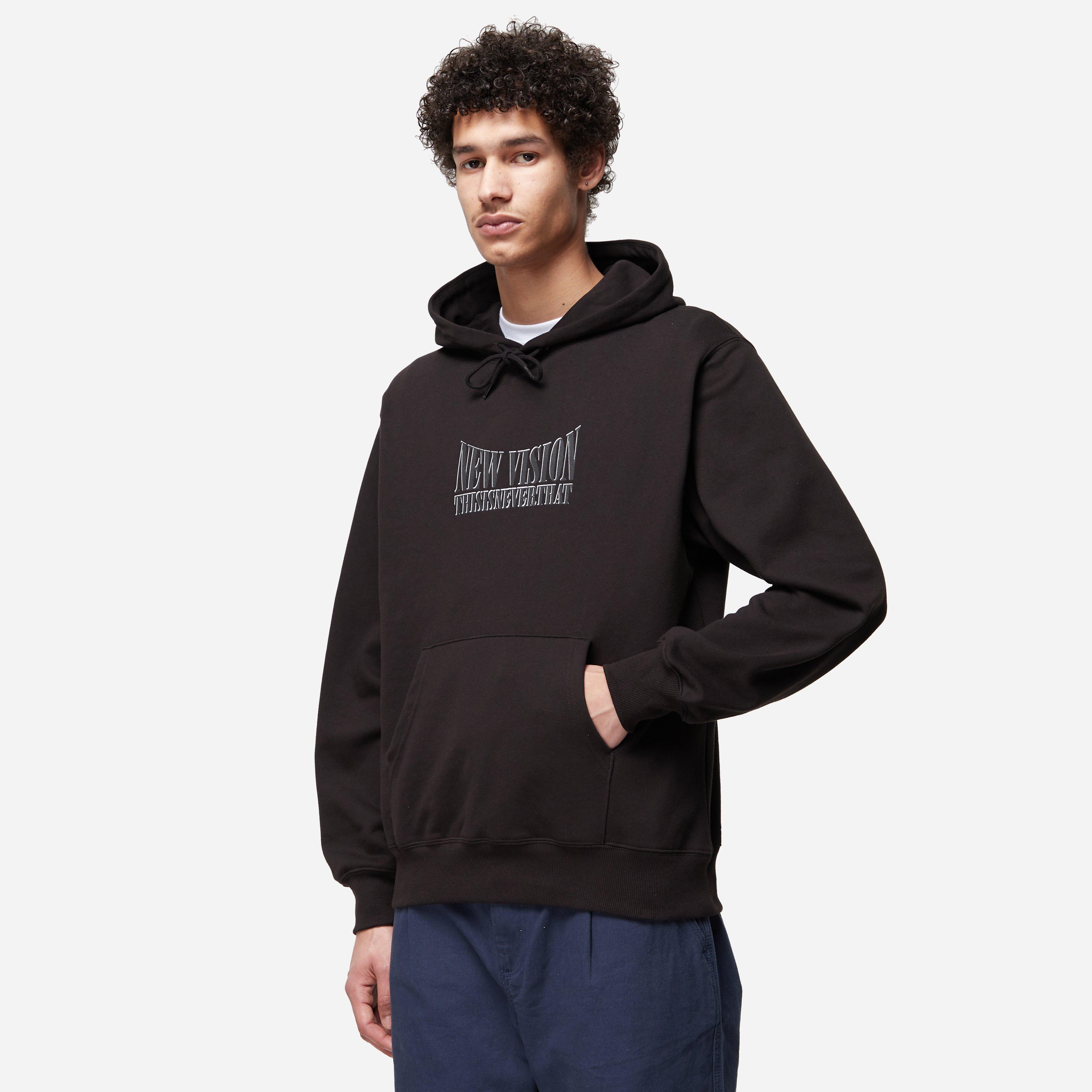 Black - 65% cotton, 35% polyester - Ribbed trims - Kangaroo pocket - Drawstring hood - Printed branding - Regular fit - Model is 6'3" and wears a size medium.
