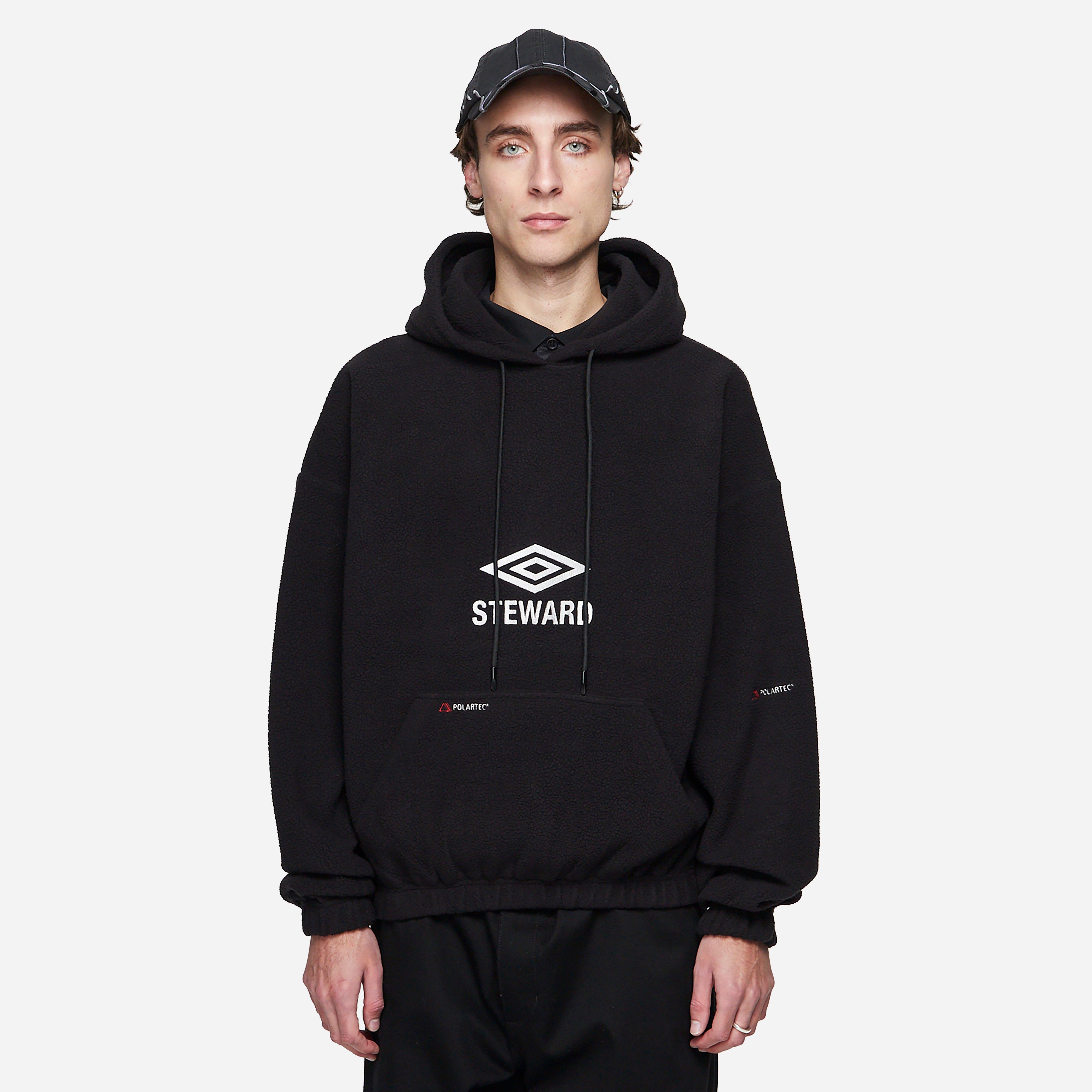 Black – 100% polyester – Loose fit – Cropped cut – Polartec fabric – Elasticated trims – Drawstring hood – Integrated mask – Kangaroo pocket – Logo embroidery – Model is 5’11’’ and wears a size medium.