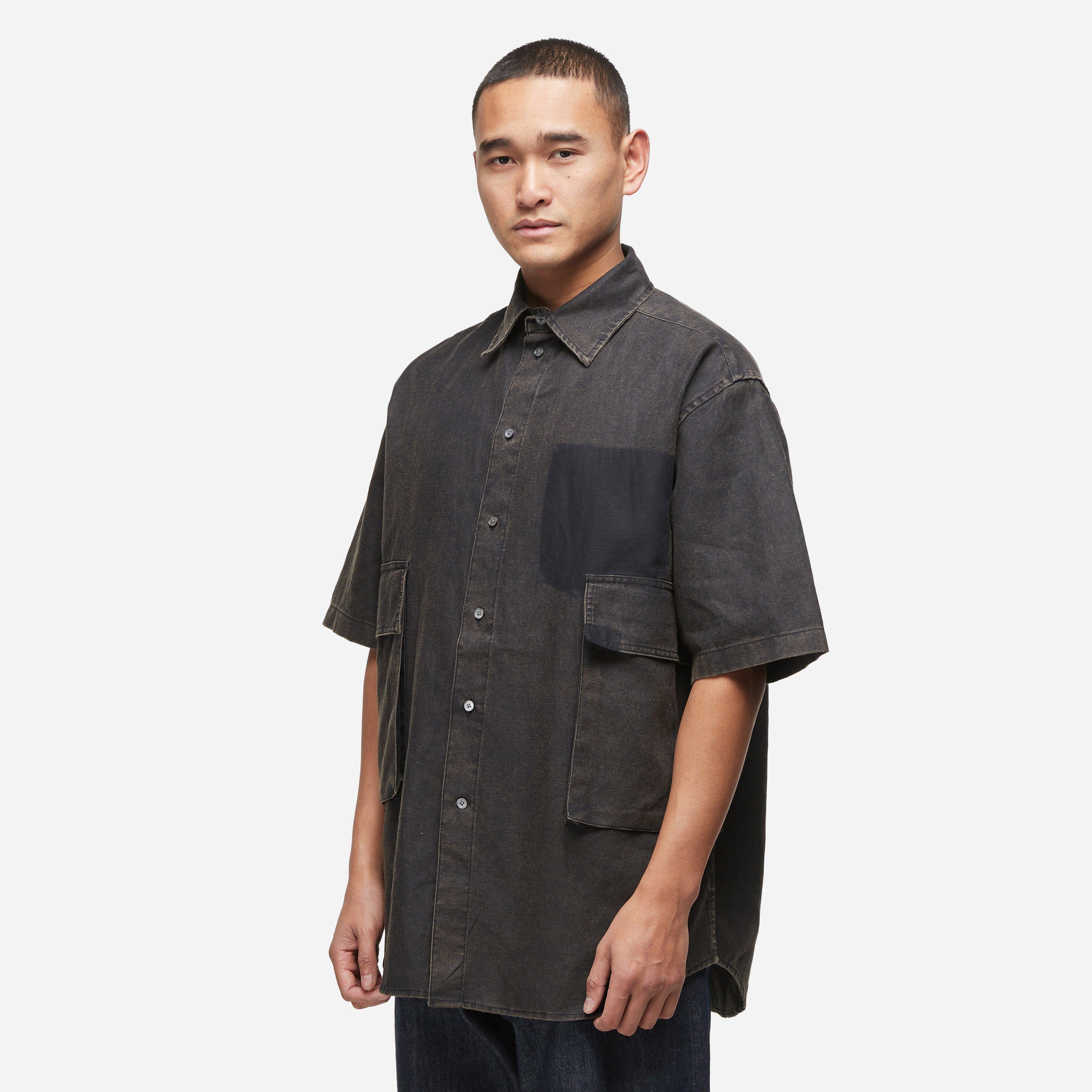 The Shirt is cut to an oversized fit and is made to be layered with items underneath. Black - 60% cotton, 40% linen - Flap pockets - Button closure - Oversized fit, take your normal size - Model is 6'1" and wears a size medium.