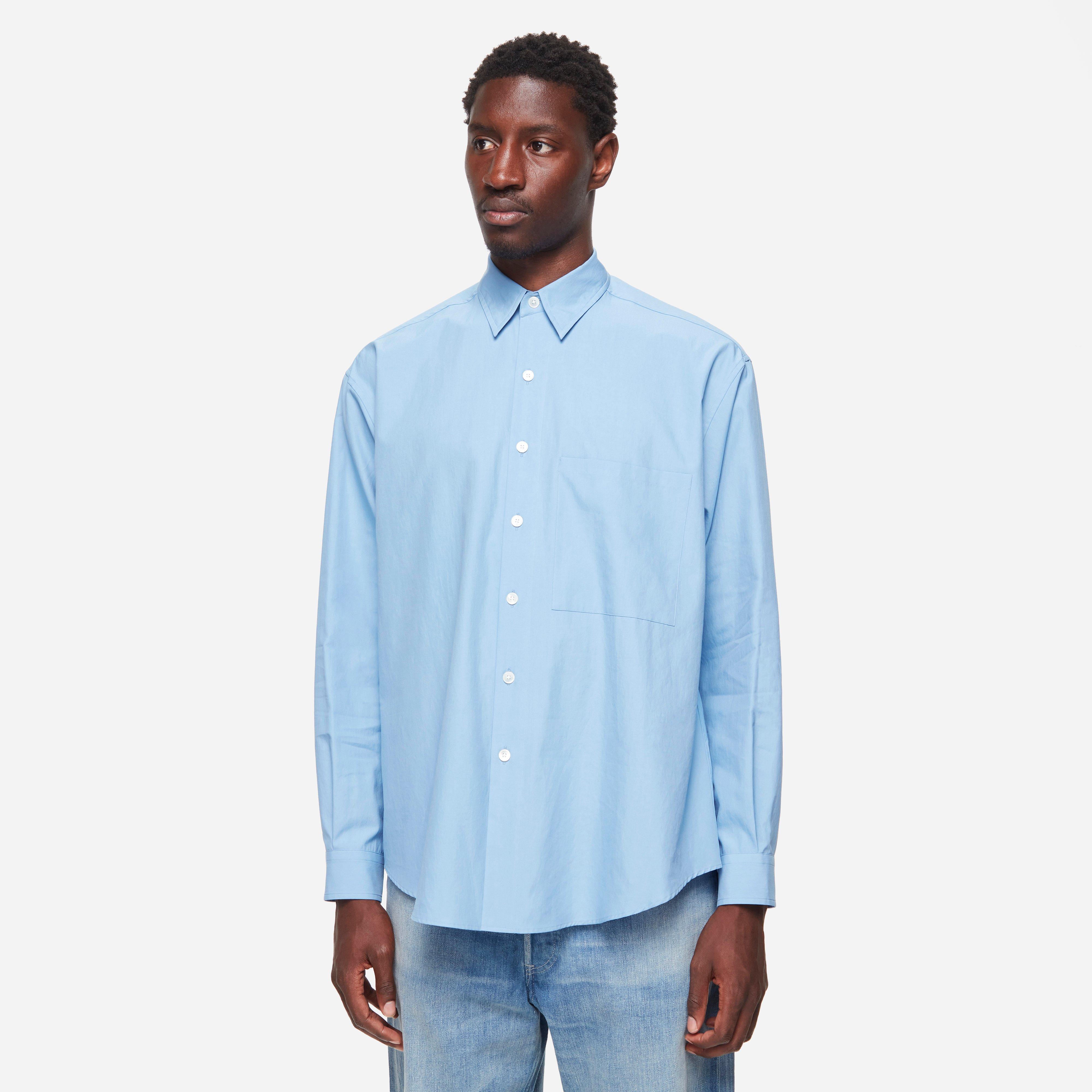 The brand's Finx Shirt is spin from Egyptian Finx cotton and the fabric is beaten and washed several times for a softer finish. Blue - 100% cotton - Oversized fit - Chest pocket - Button closure - Model is 6'1" and wears a size medium
