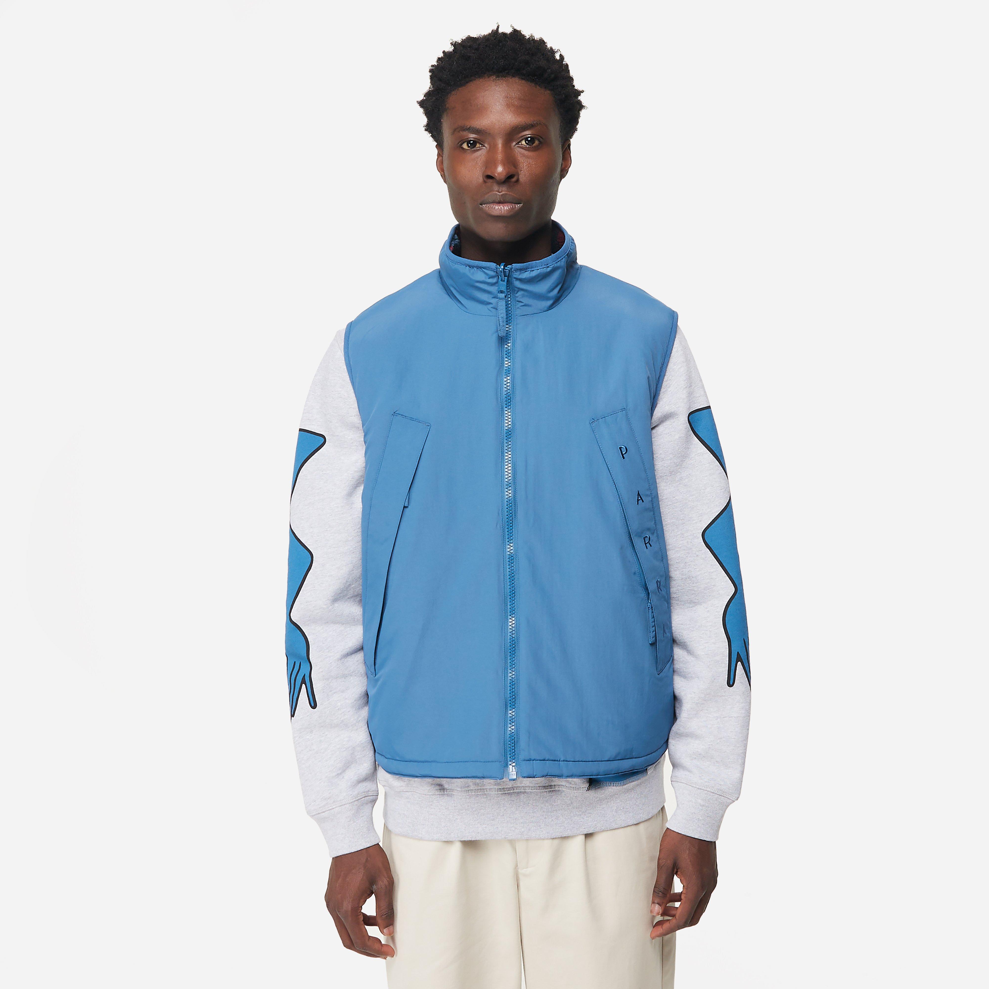Blue - 100% nylon - Reversible - Custom-printed polar fleece inner - YKK zip closure - Large zip pockets with tonal embroidery - Regular fit, take your normal size - Model is 6'0" and wears a size medium.