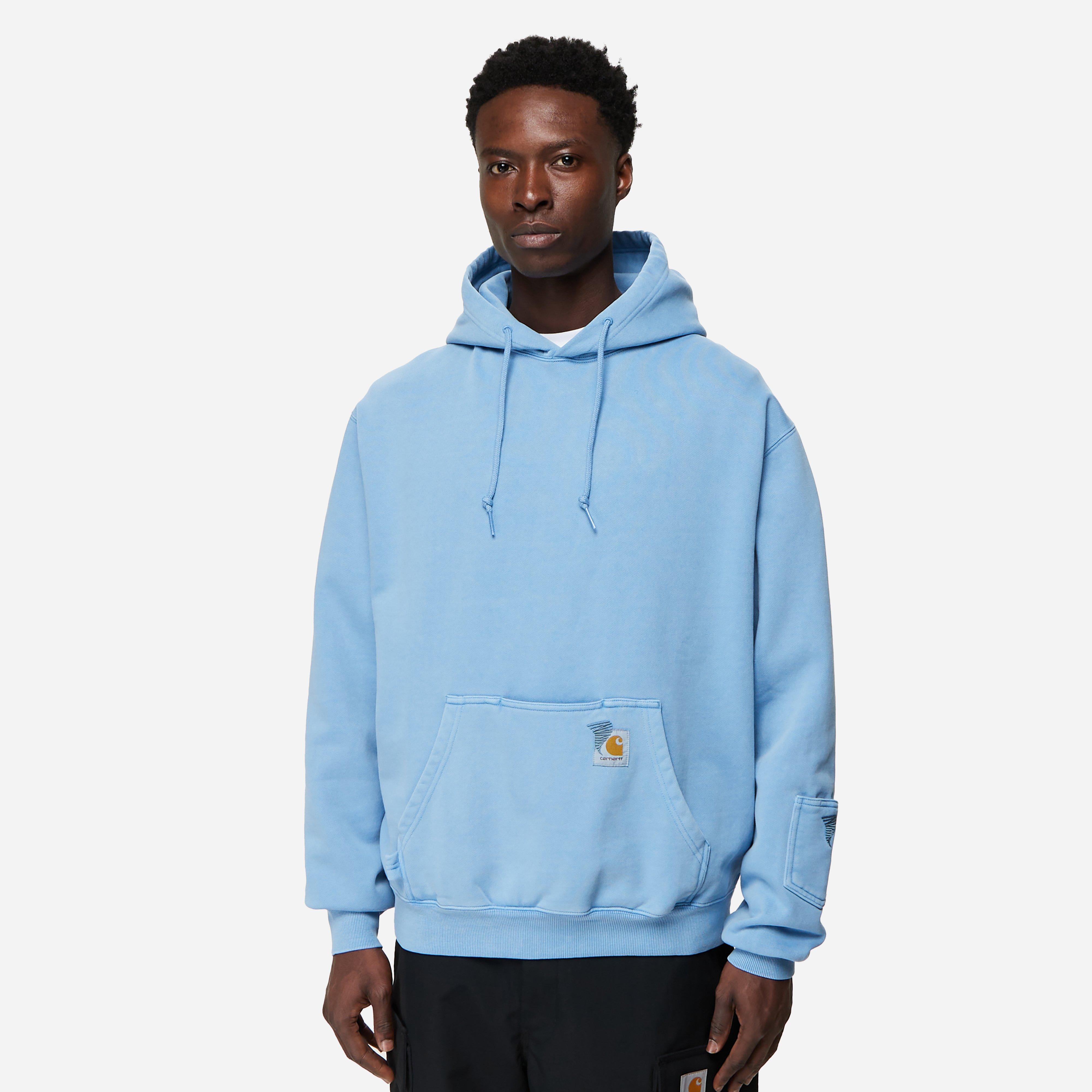 Blue – 80% cotton/20% polyester – Oversized fit – Hood draw cords – Hidden phone pocket – Pigment dyed – Kangaroo pocket – Brand embroidery – Co-branded Square Label – Model is 6’2’’ and wears a size medium.