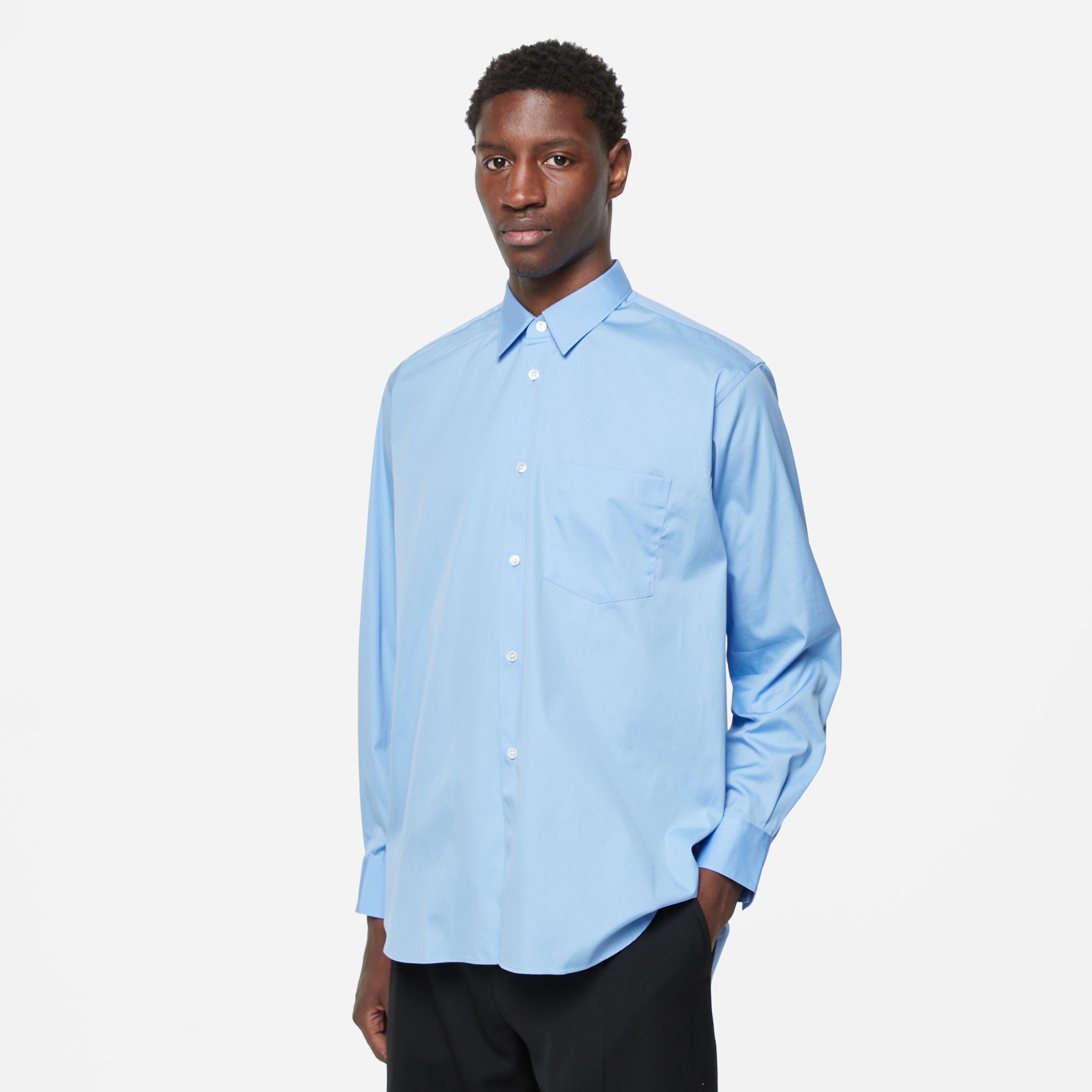 Blue - 100% cupro - Made in France - Point lapel - Chest pocket - Button closure - Curved hem - Model is 6'1" and wears size medium.