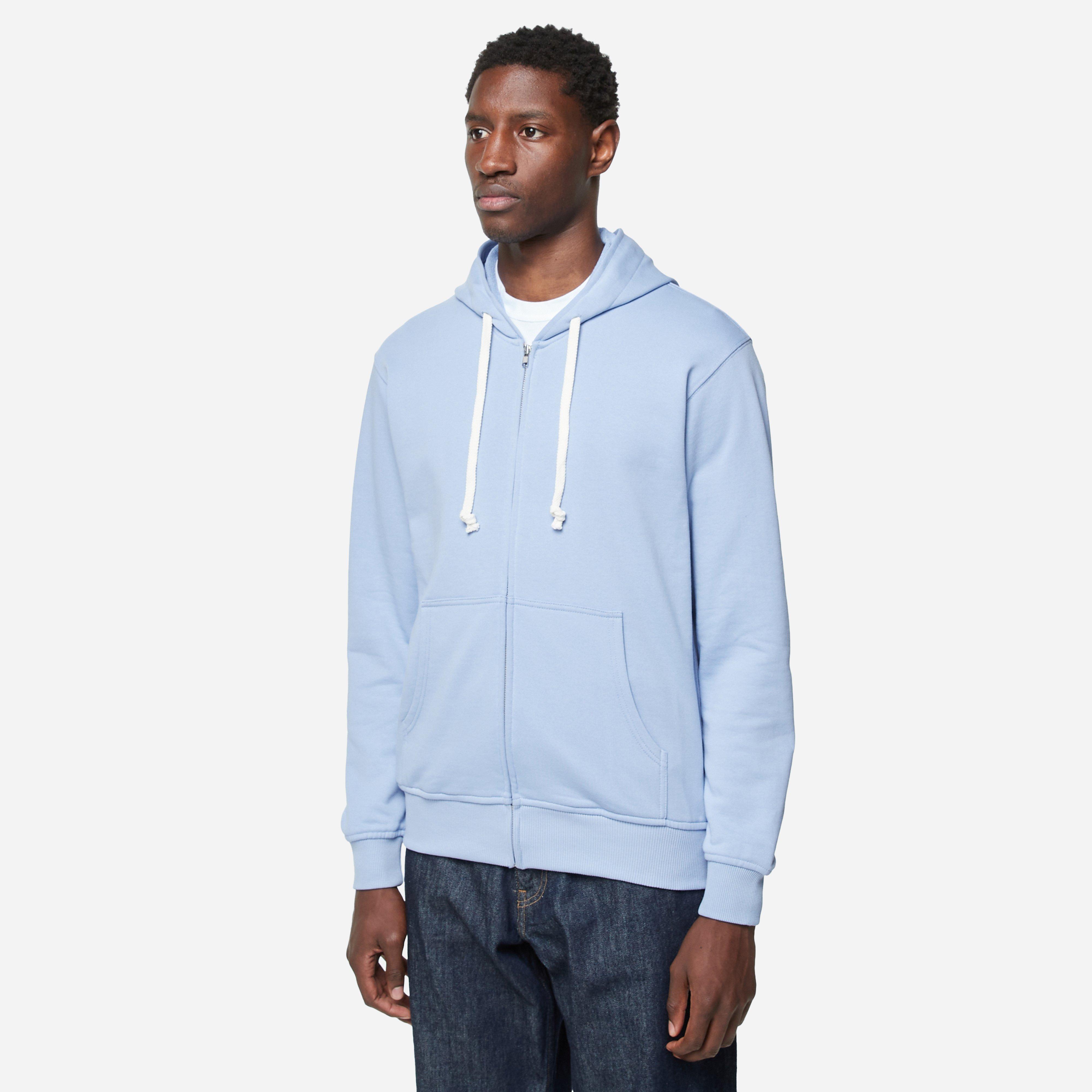 Blue - 100% cotton - Zip closure - Drawcord hood - Ribbed cuffs - Model is 6'1" and wears size medium.