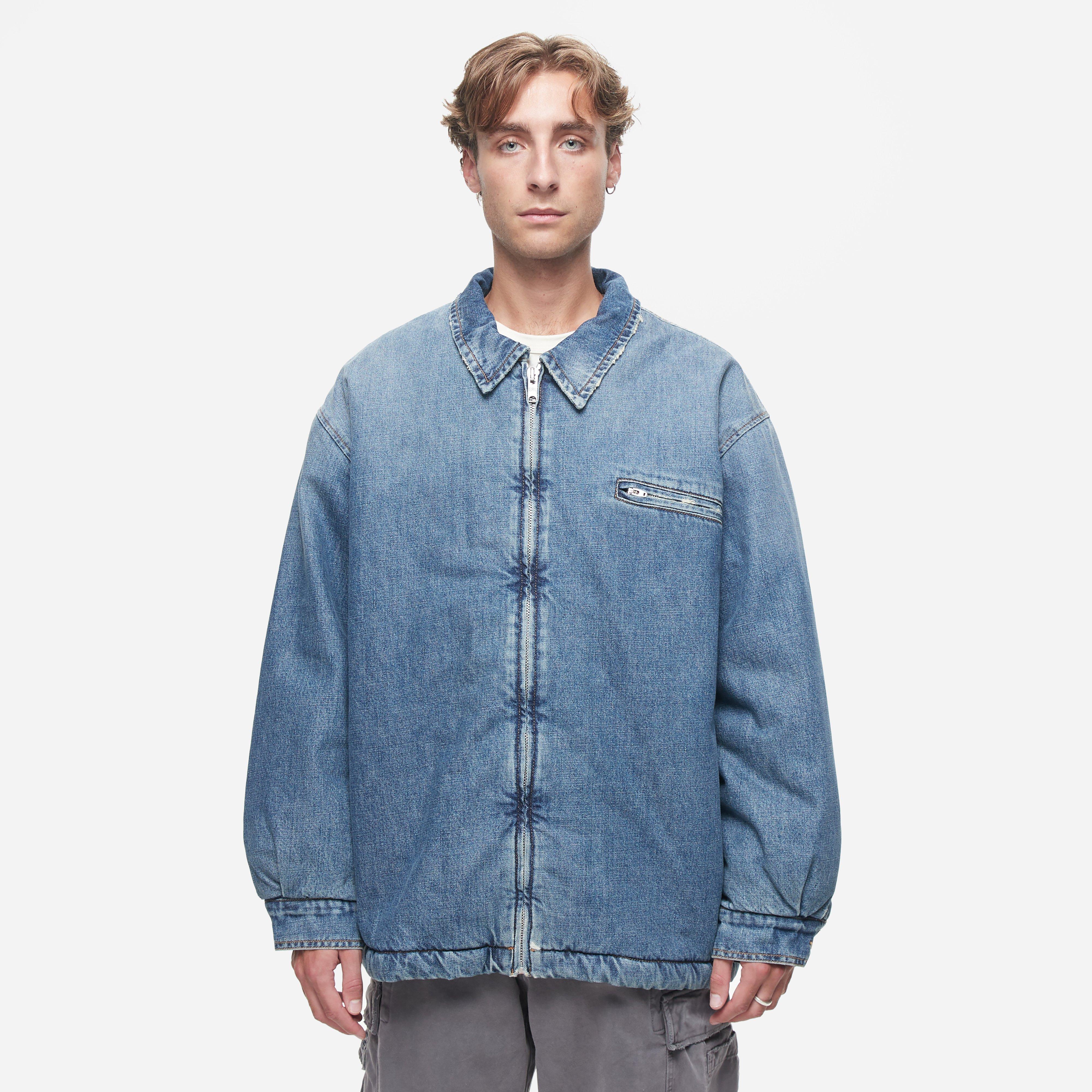 Blue – 100% cotton – Made in Italy – Boxy fit – Sherpa lined – Zip chest pocket – Pointed collar – Full zip closure – Model is 5’11’’ and wears a size medium.