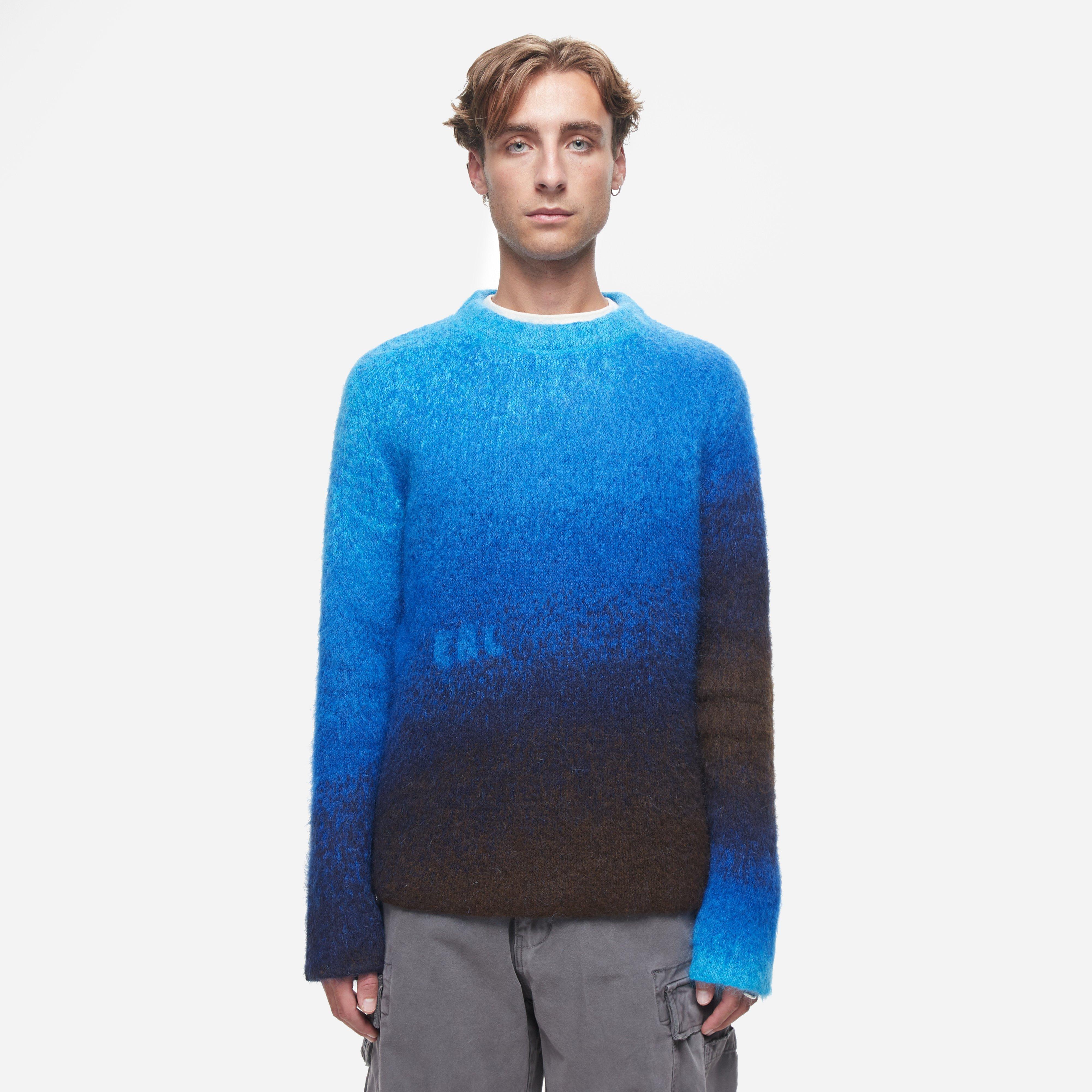 Blue – 46% polyamide/31% mohair/21% acrylic/2% wool – Regular fit – Long sleeves – Intarsia motif – Model is 5’11’’ and wears a size medium.