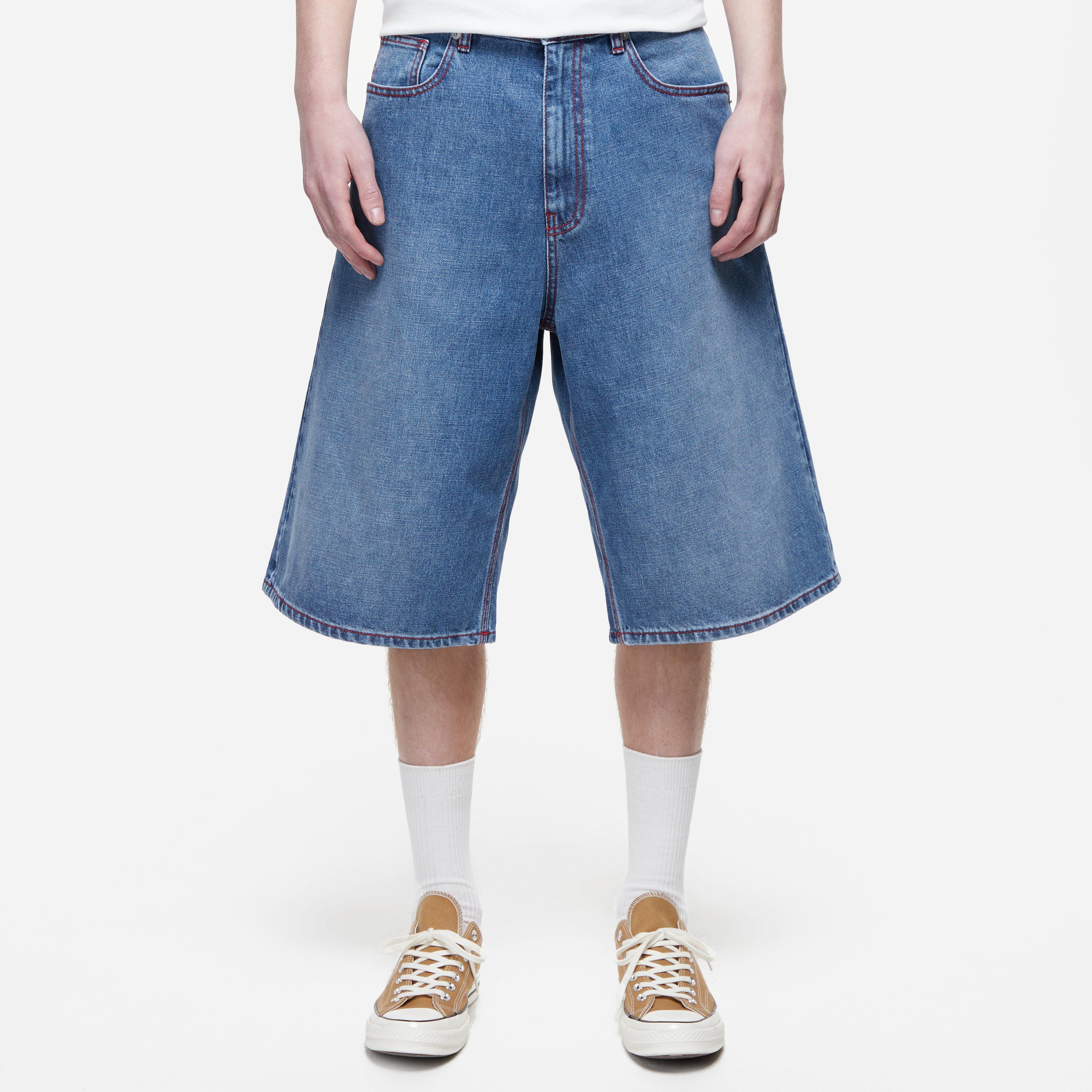 Blue - 100% cotton - Button, zip fly - Wide leg - 5 pocket - Model is 6’2’’ and wears a size medium.