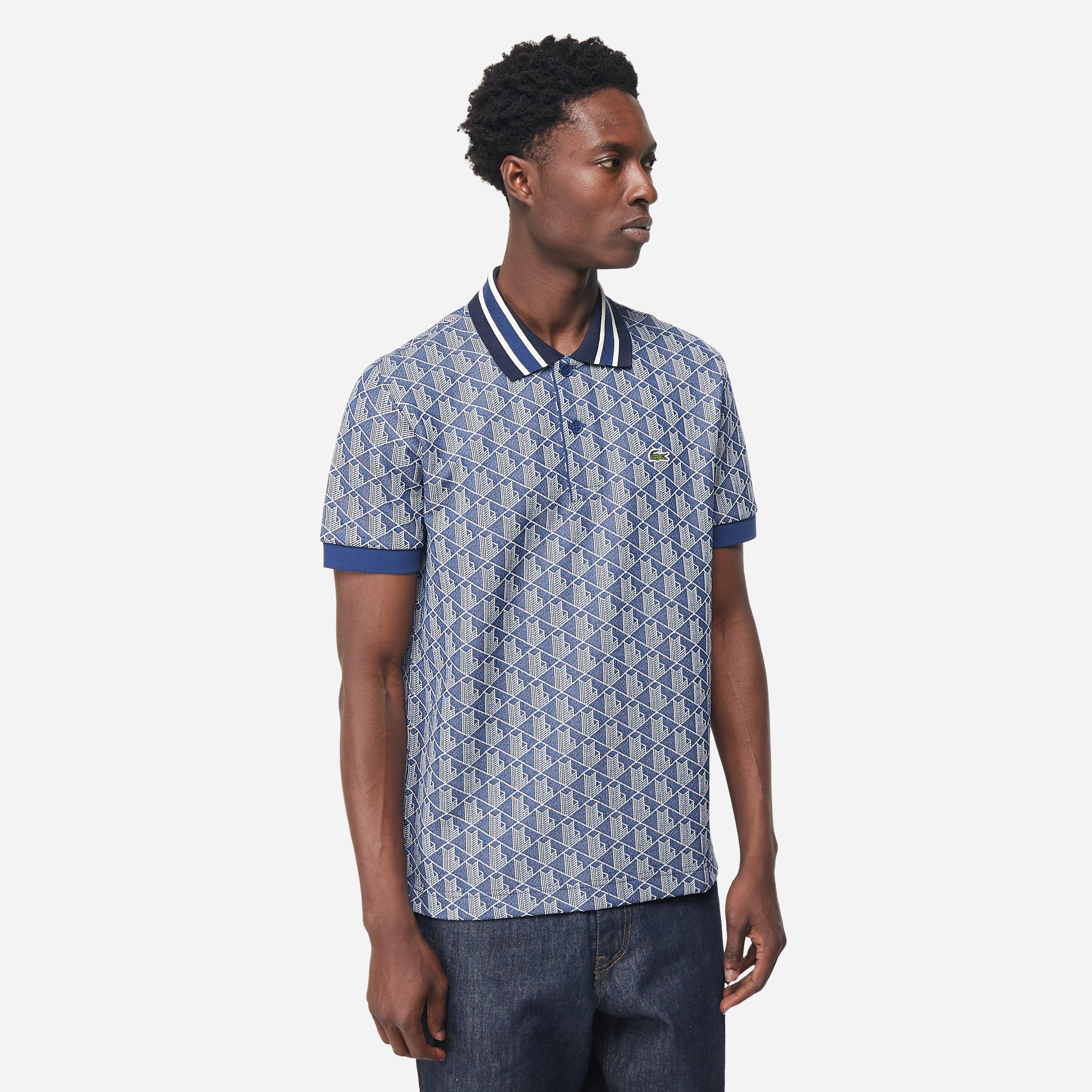 Blue - 60% polyester, 35% cotton, 5% polyamide - Monogram print - Ribbed trims - Button placket - Embroidered branding - Regular fit, take your normal size - Model is 6'1" and wears a size medium.