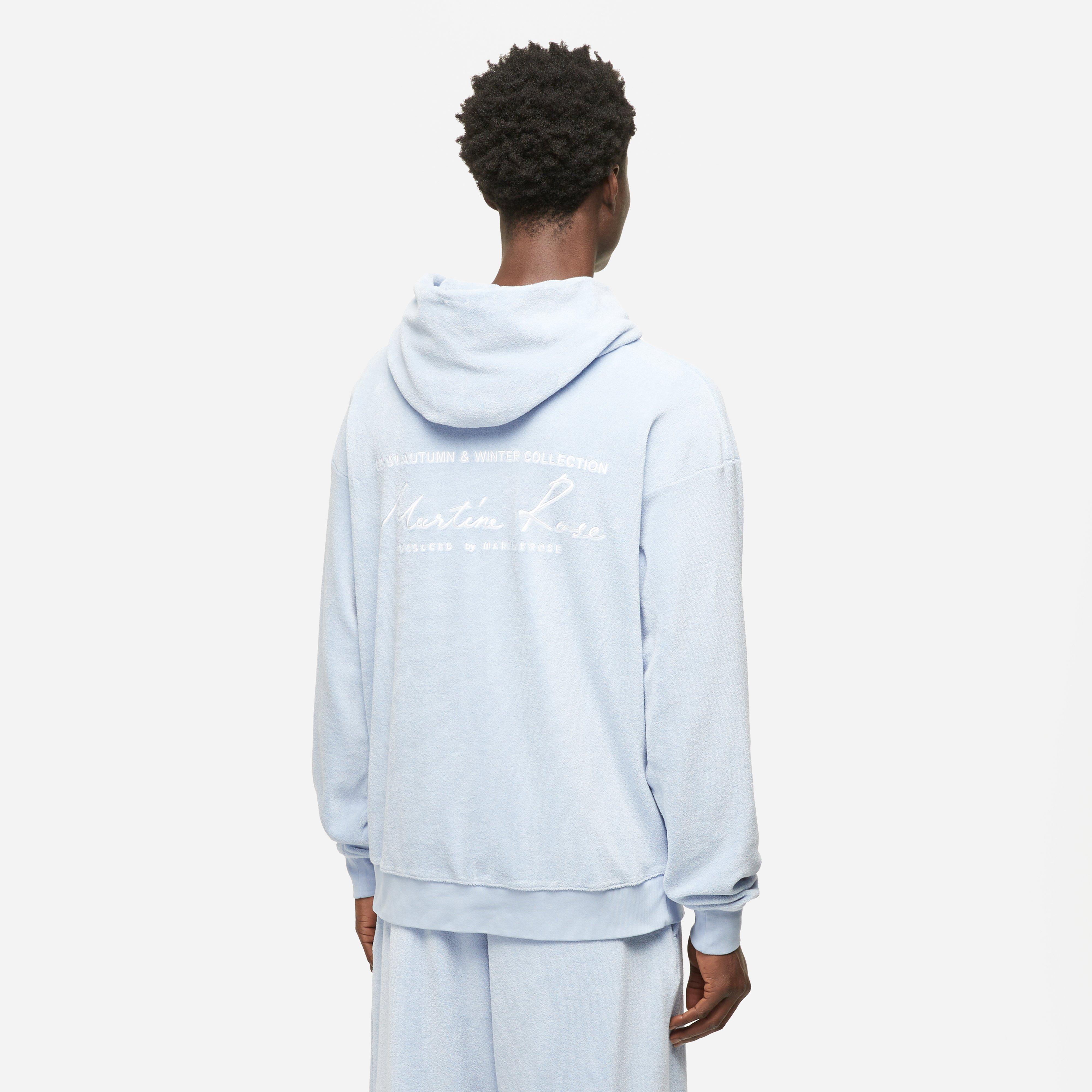 This Hoodie is a core Martine Rose style made in Portugal from premium fabric and showcasing the brand's signature scribble logo referencing the '90-'91 Autumn & Winter Collection motif.
