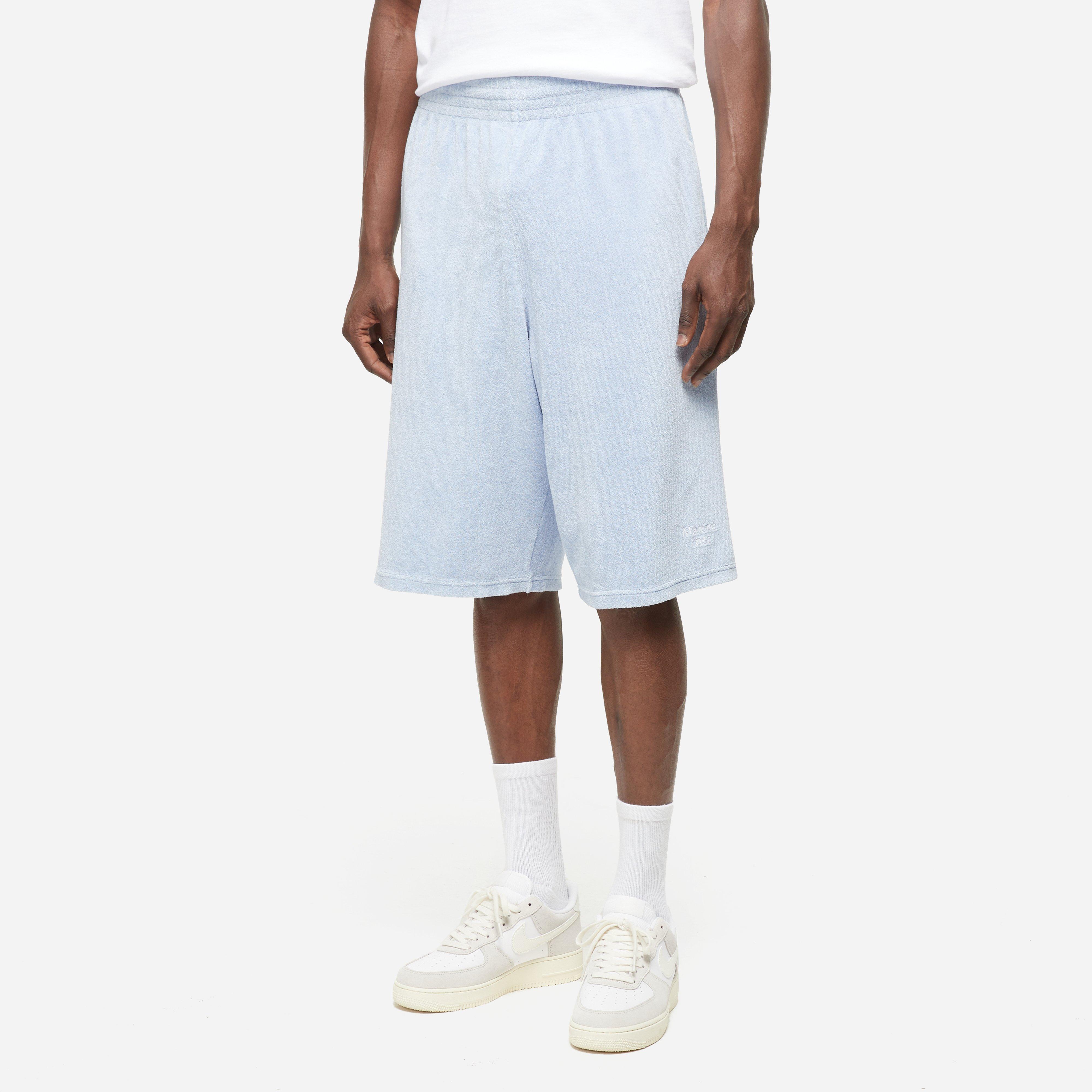 The brand's Short for SS24 is a casual cut that blends cotton-nylon to create a unique fuzzy texture, embellished with the designer's signature. Blue - 79% cotton, 19% nylon, 2% elastane - Elastic drawstring waist - Embroidered branding - Oversize fit - Model is 6'1" and wears a size medium.