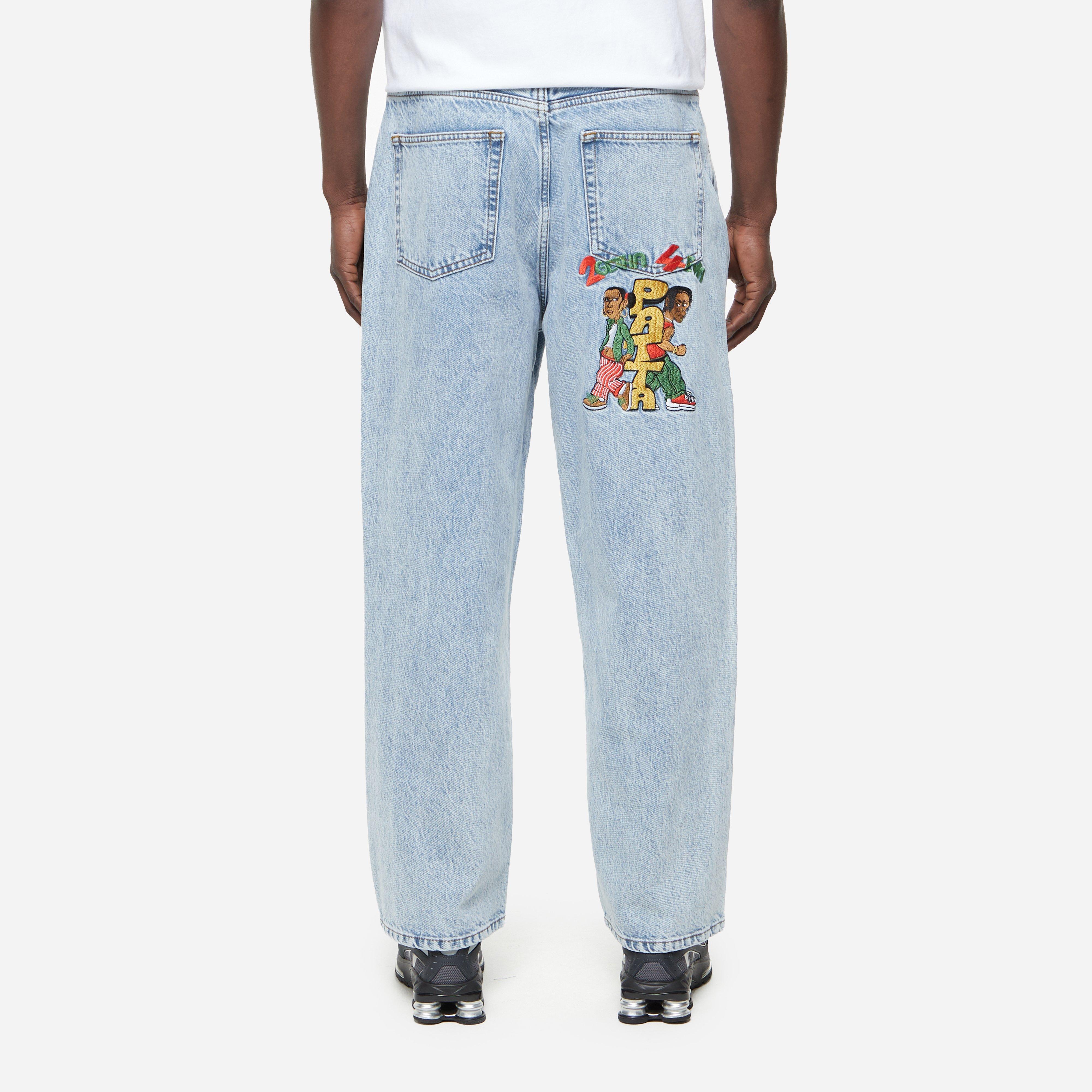 Blue - 100% cotton - Baggy fit - Two side pockets - Coin pocket - Back pockets - YKK zip - Branded buttons - Belt loops - Made in Turkey - Model is 6'2" and wears size 32".