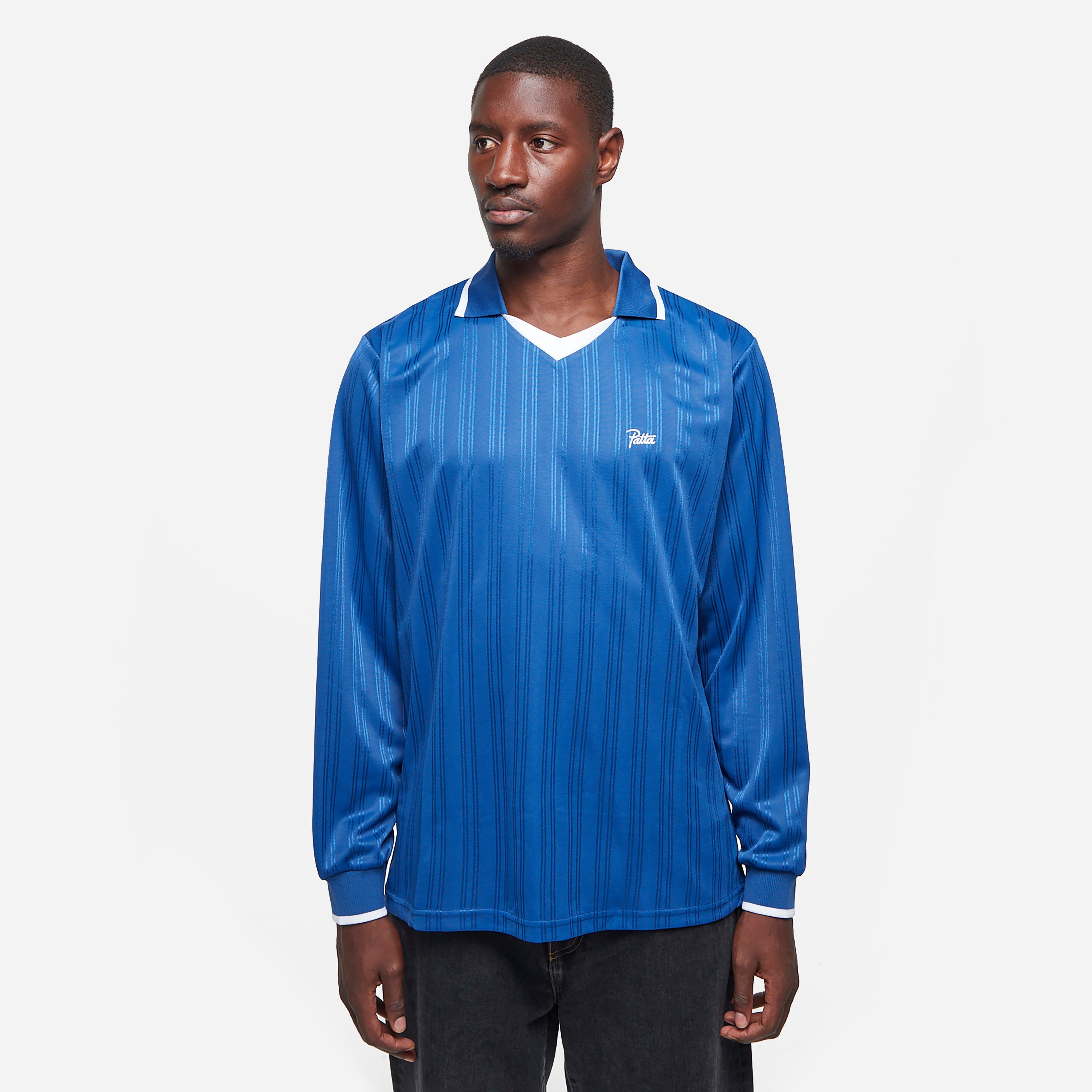 Blue - 100% polyester - Spread collar - Ribbed cuffs - Embroidered logo - Model is 6'1" and wears a size medium