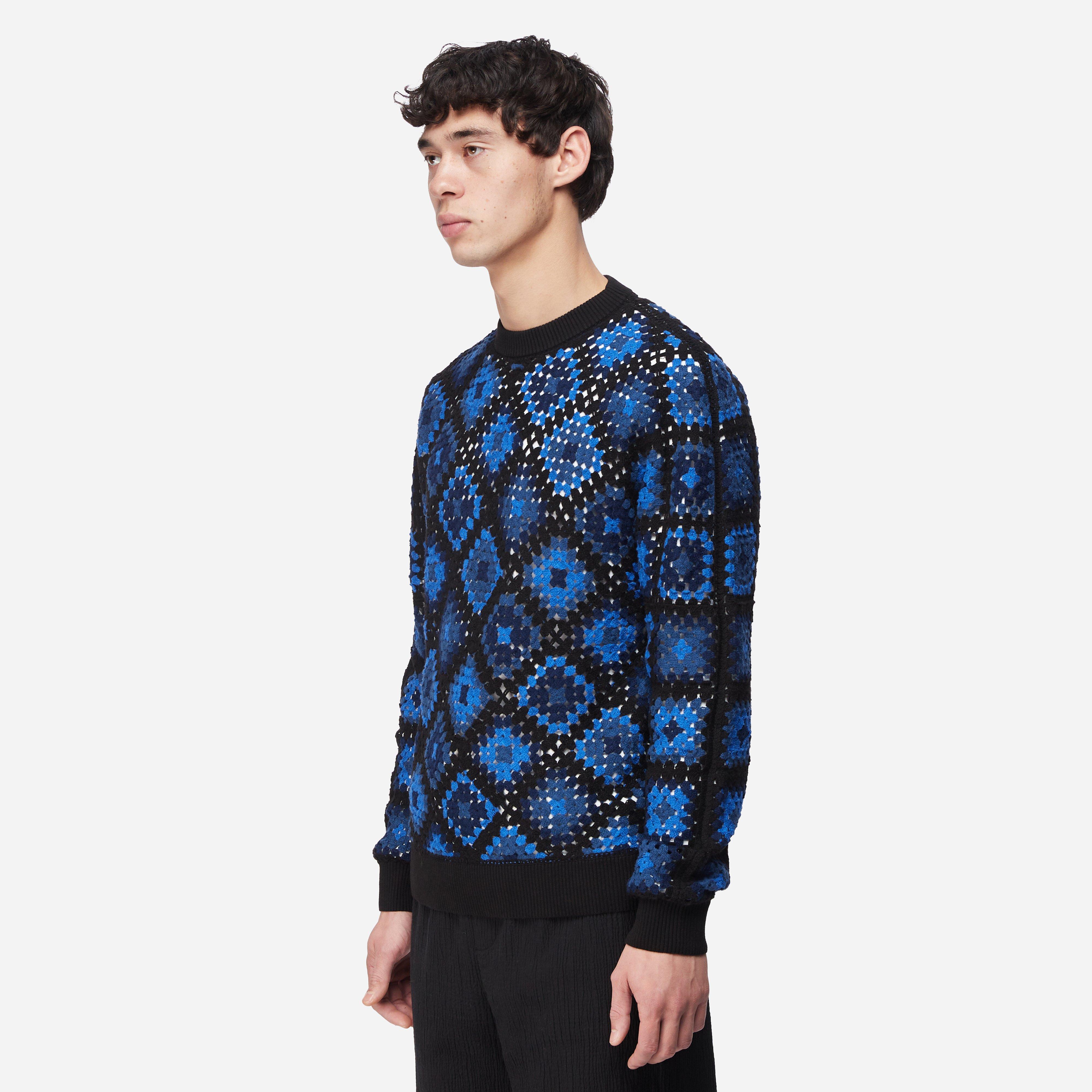 The Verso Crochet Knit arrives as a part of Percival's AW24 Antiquities collection in indigo with a custom crochet design.