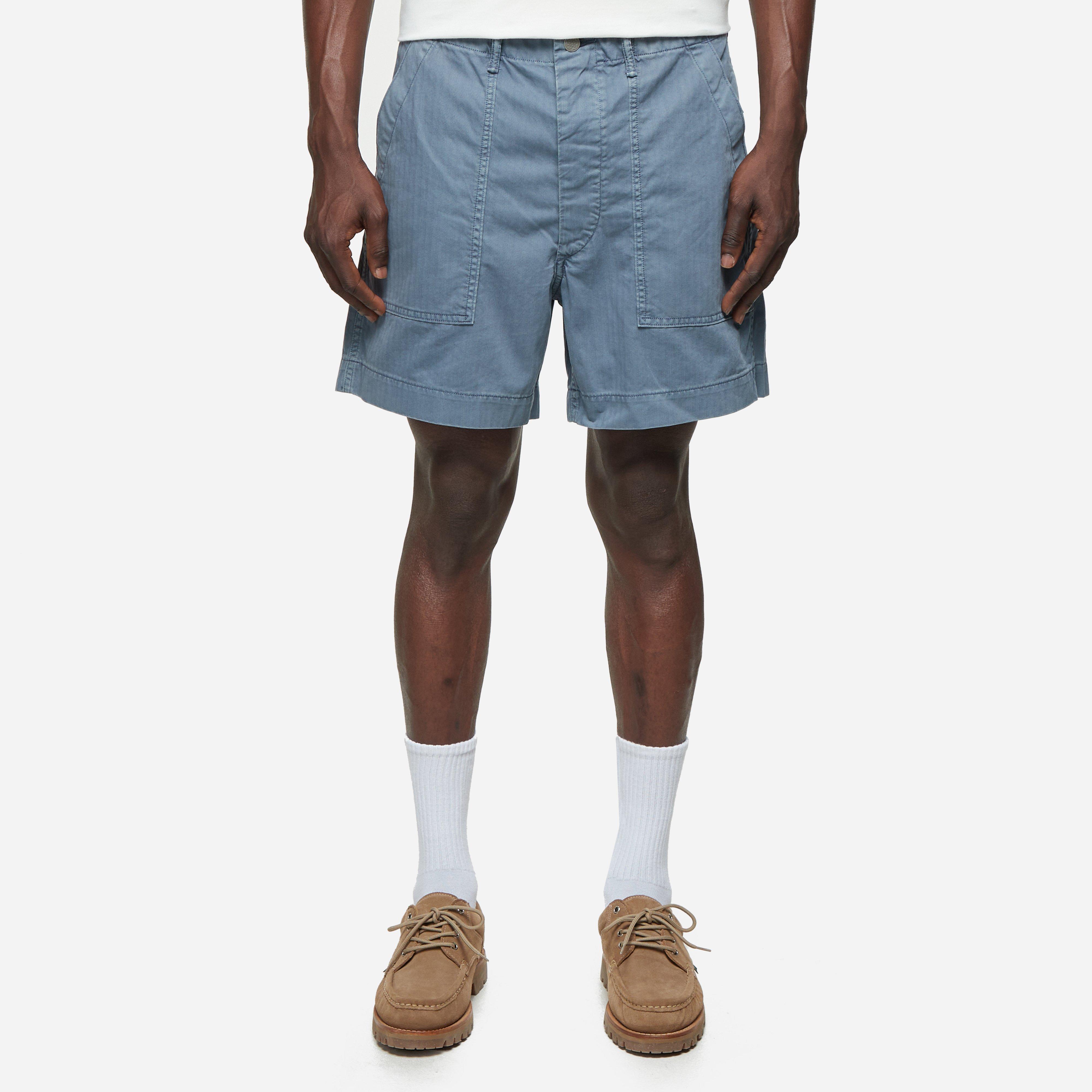 Blue - 100% cotton - Button fastening - Multiple pockets - Belt loop - Model is 6'2" and wears a size medium.