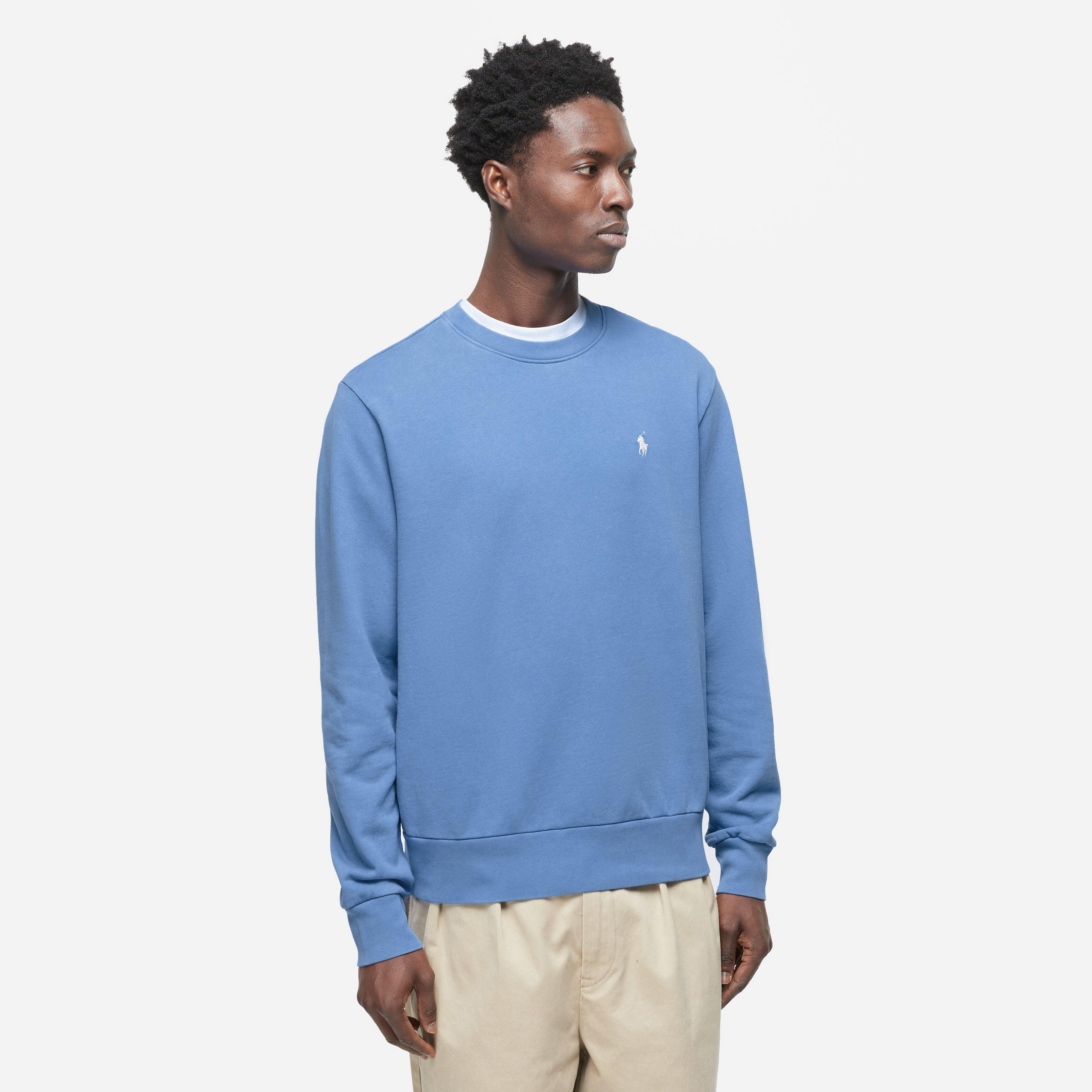 This Sweat offers a broken-in look and feel with a garment wash finish and use of ultra-comfy loopback cotton with a terry-like interior. Blue - 100% cotton/ polyester blend - Garment washed - Ribbed trims - Embroidered branding - Regular fit, take your normal size - Model is 6'1" and wears a size medium.