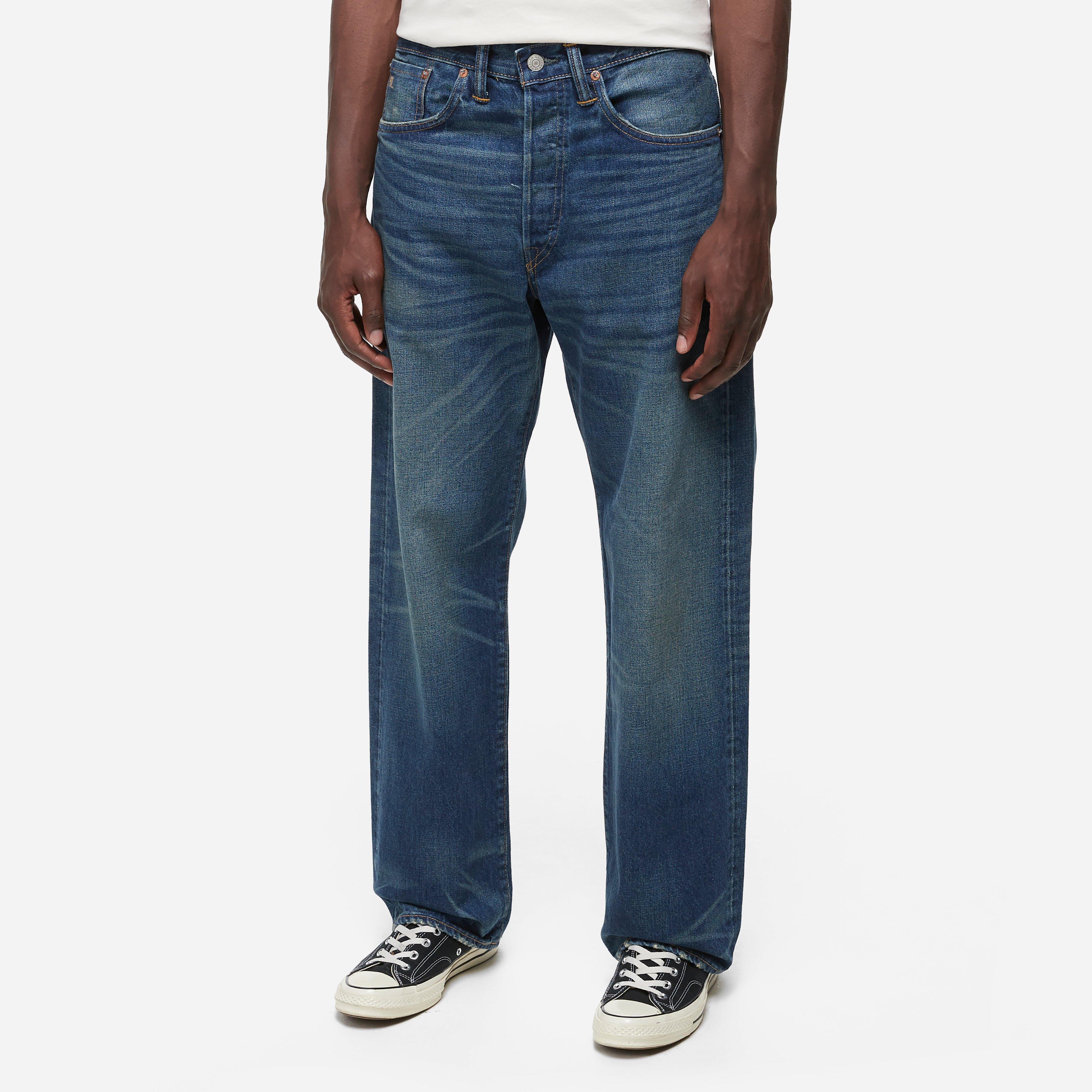 25oz Japanese selvedge denim with a deep indigo wash rich with vintage feeling and rugged Americana sentiment. Blue - 100% cotton - Button fly - Five pocket construction - Copper tone rivets - Made in the USA - Straight leg - Model is 6'1" and wears a size 32 - Waist size guide (in.) - 30=30, 32=32, 34=34, 36=36